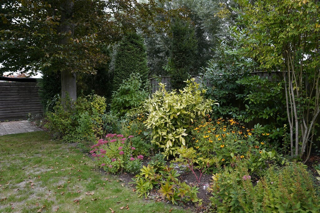 De tuin met zonneterras is fraai aangelegd, heerlijk beschut en biedt veel privacy; je hebt nauwelijks zicht op andere huizen.