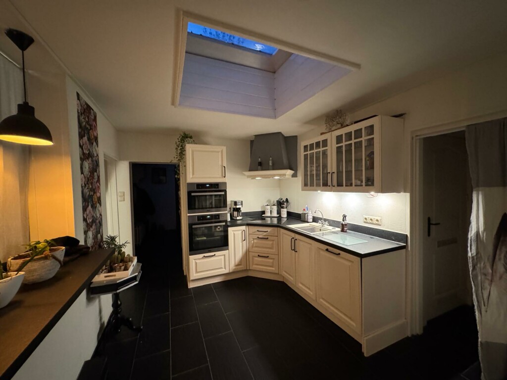 - Half open keuken voorzien van inductie kookplaat, oven, magnetron, koelkast en vaatwasser (2020).