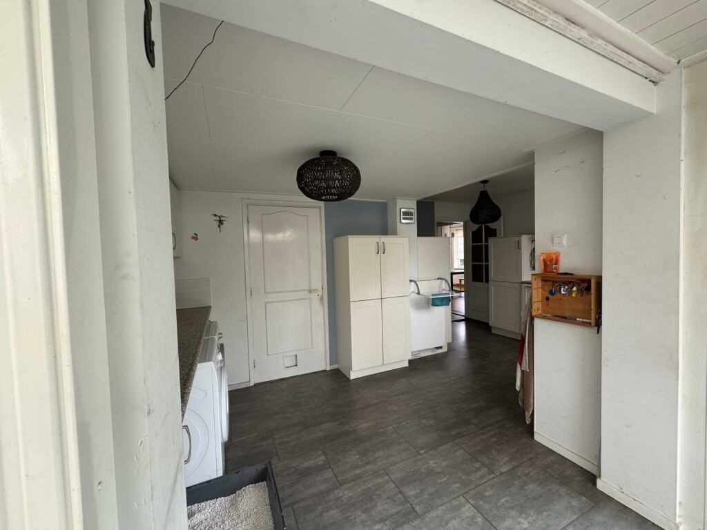 Entree/hal met toiletruimte en toegang tot de sfeervolle woonkamer, voorzien van een inbouwhaard en een eikenhouten planken vloer. De keuken is uitgerust met een 5-pits gasstel, vaatwasser, koelkast en cooker. Aansluitend bevindt zich de serre, die zorgt voor extra leefruimte en veel lichtinval.