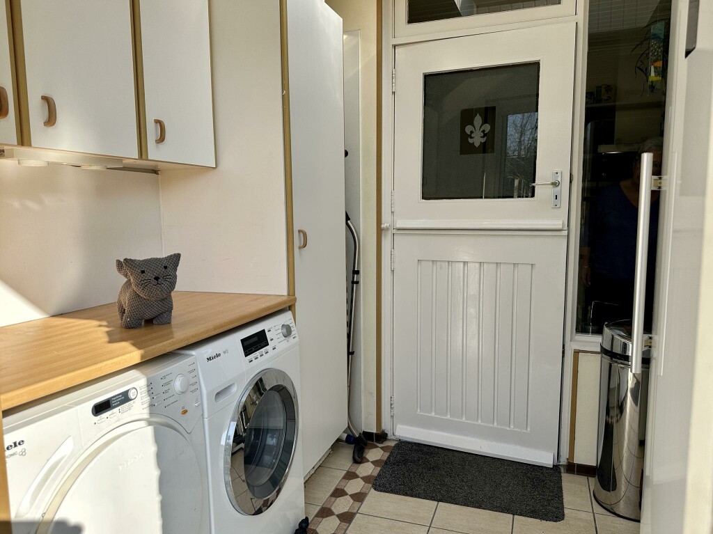 Aangebouwd aan de woning bevindt zich een garage, ideaal voor het stallen van een auto, fietsen of extra opslagruimte.