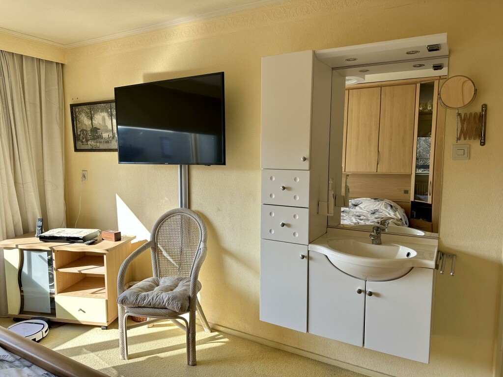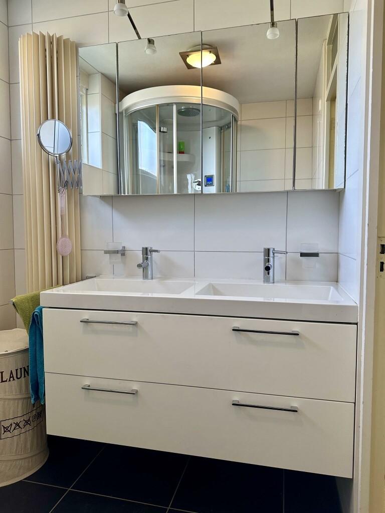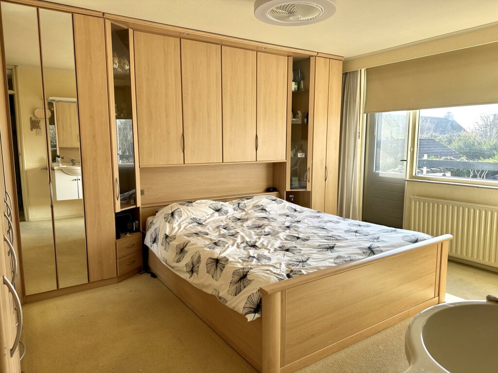 Overloop met toegang tot alle vertrekken. De grootste slaapkamer beschikt over een wastafelmeubel en biedt toegang tot het balkon aan de achterzijde. Daarnaast zijn er nog twee ruime slaapkamers, waarvan één ook met een eigen wastafelmeubel. De badkamer is voorzien van elektrische vloerverwarming, een stoomcabine (Villeroy & Boch, 2007), een dubbel wastafelmeubel en een hangtoilet.
