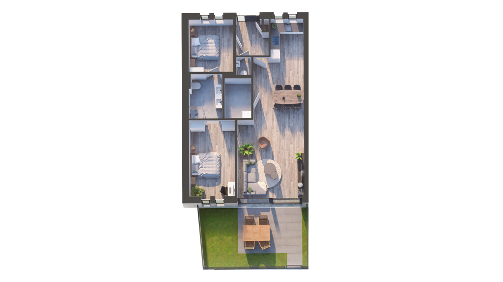 Vier appartementen op de begane grond bieden u een privé tuin, waardoor u kunt genieten van groen en het buitenleven.