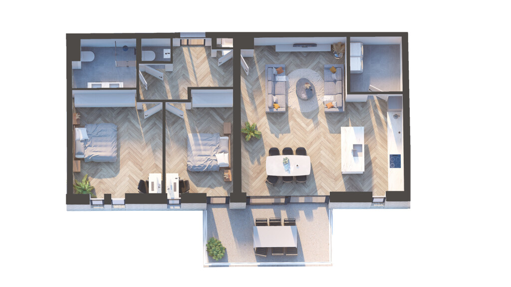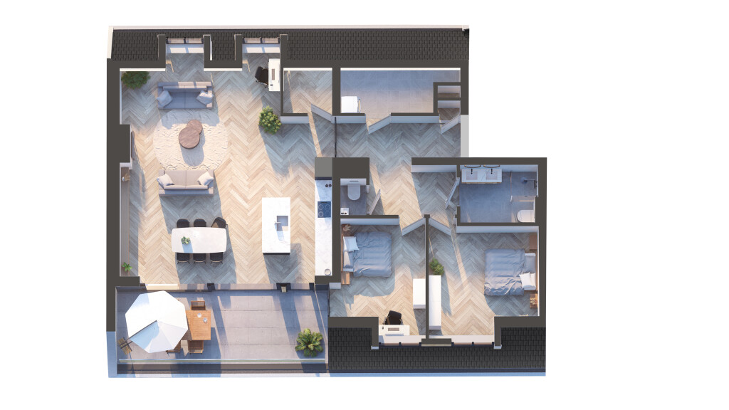 Voor degenen die op zoek zijn naar ultieme luxe en privacy, bieden de twee penthouses met royale dakterrassen een comfortabele plek. Geniet en ontspan in uw eigen stukje hemel op de bovenste verdieping.