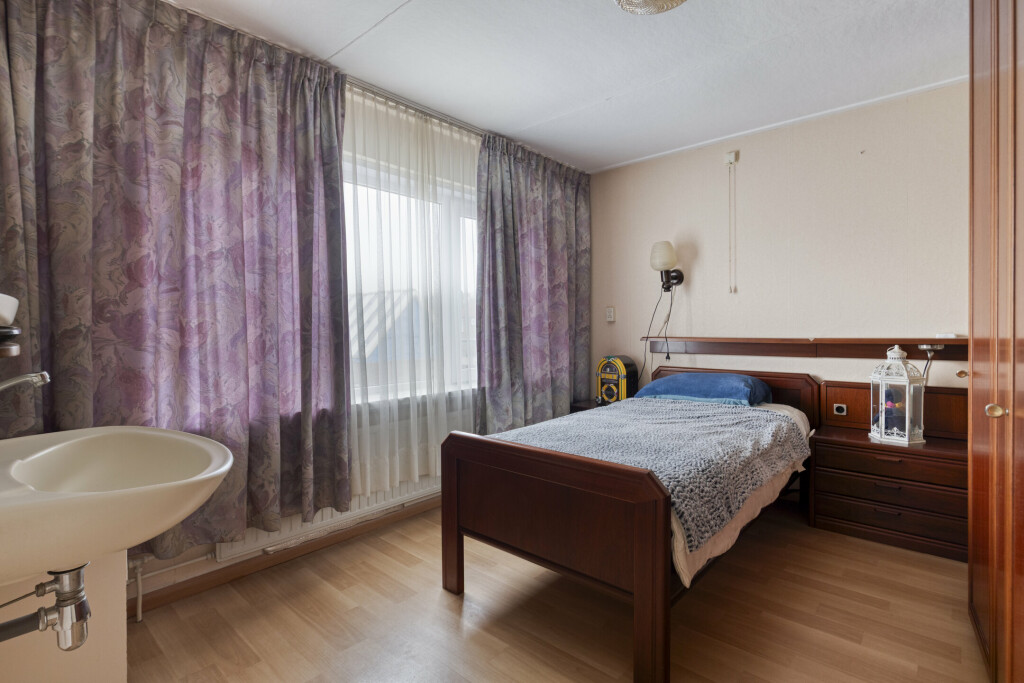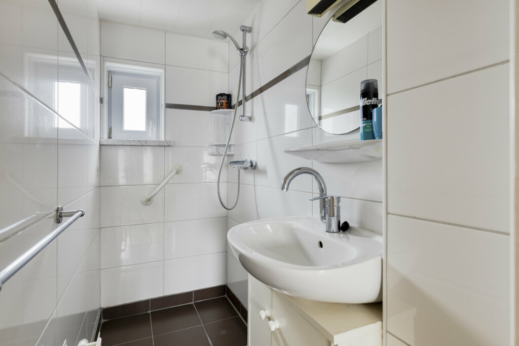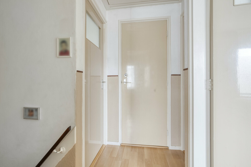 De overloop leidt naar maar liefst vier slaapkamers, waardoor er volop ruimte is voor een groot gezin, een thuiskantoor of een hobbykamer. Eén kamer is extra comfortabel dankzij een eigen wastafel. De badkamer is functioneel ingericht met een douche en wastafel.