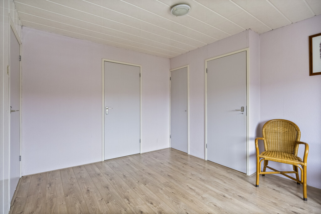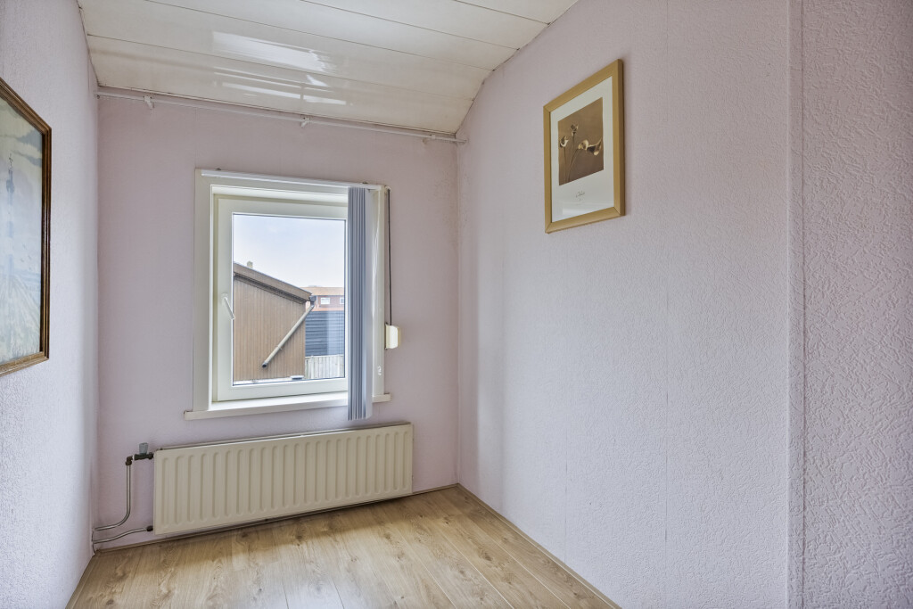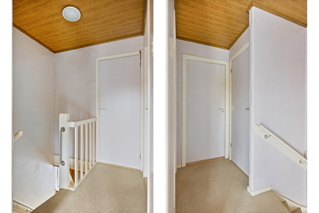 Op de eerste verdieping leidt de overloop naar drie ruime slaapkamers en de badkamer. Alle slaapkamers zijn voorzien van vaste kasten, ideaal voor extra opbergruimte. De badkamer is praktisch ingericht en beschikt over een douche en wastafel, met de mogelijkheid om deze verder naar eigen smaak te moderniseren.