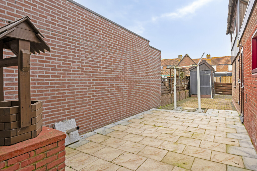 De achtertuin, gelegen op het westen, biedt volop rust en privacy. Dankzij de gunstige zonligging kunt u hier tot in de late uurtjes genieten van de zon. De tuin is ruim genoeg om een sfeervol terras in te richten, ideaal om heerlijk buiten te eten of te ontspannen met vrienden en familie. Daarnaast beschikt de tuin over: een garage met vliering, ideaal voor het stallen van uw auto of als extra opslagruimte en een vrijstaand houten tuinhuis, perfect voor het opbergen van tuingereedschap, fietsen of als hobbyruimte.