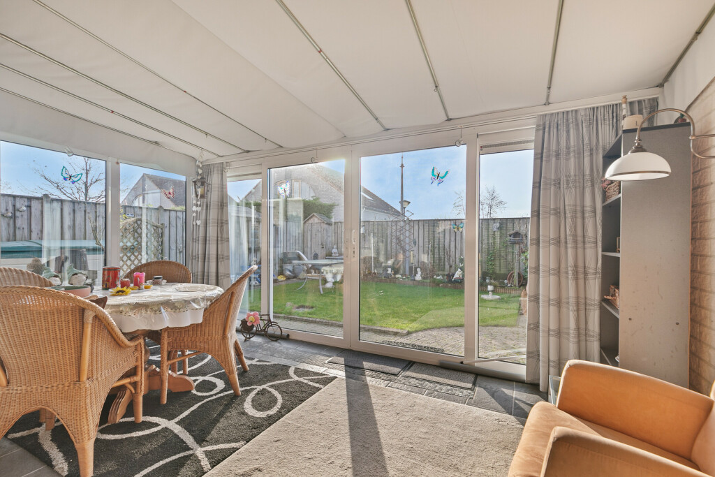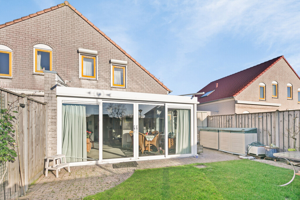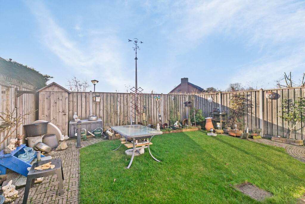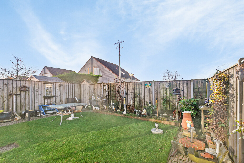De zonnige, volledig omheinde achtertuin is ideaal gelegen op het zuidwesten, zodat u vrijwel de hele dag kunt genieten van de zon. Het ruime terras biedt volop ruimte voor een gezellige zit- en/of eethoek, perfect voor lange zomeravonden en barbecues met vrienden en familie. Daarnaast beschikt de woning over een praktische berging die eenvoudig buitenom te bereiken is.
