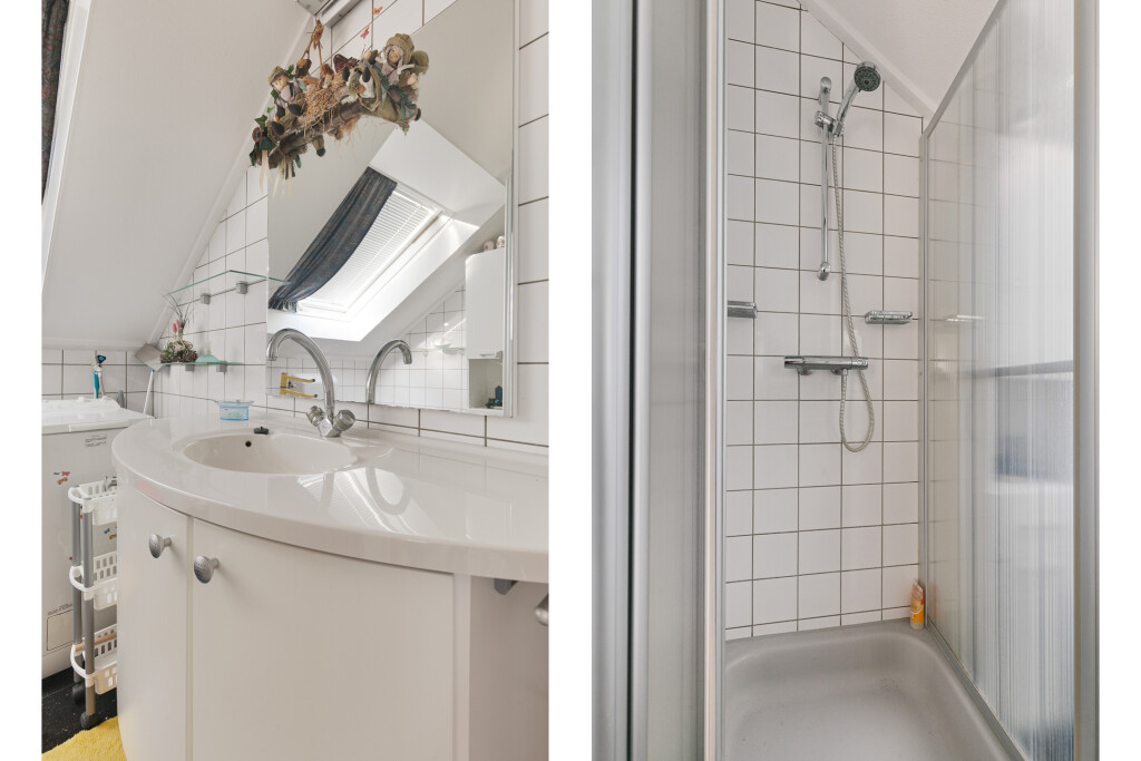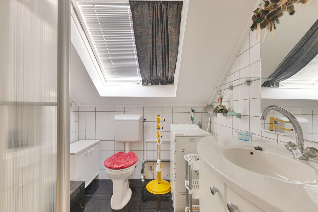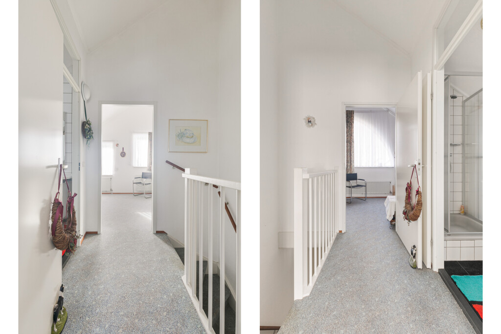 De eerste verdieping beschikt over een royale overloop die toegang biedt tot twee comfortabele slaapkamers en een complete badkamer. De badkamer is voorzien van een inloopdouche, wastafelmeubel, tweede toilet en een aansluiting voor de wasmachine.