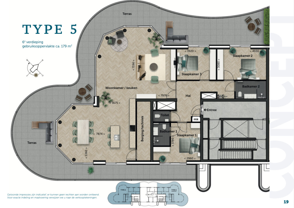 Type 5, gelegen aan jachthaven- en havenzijde heeft 3 slaapkamers