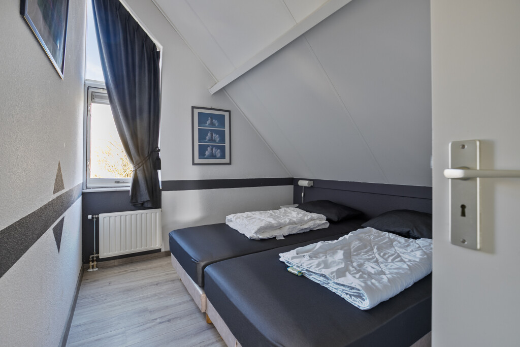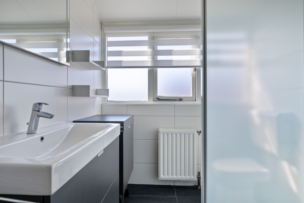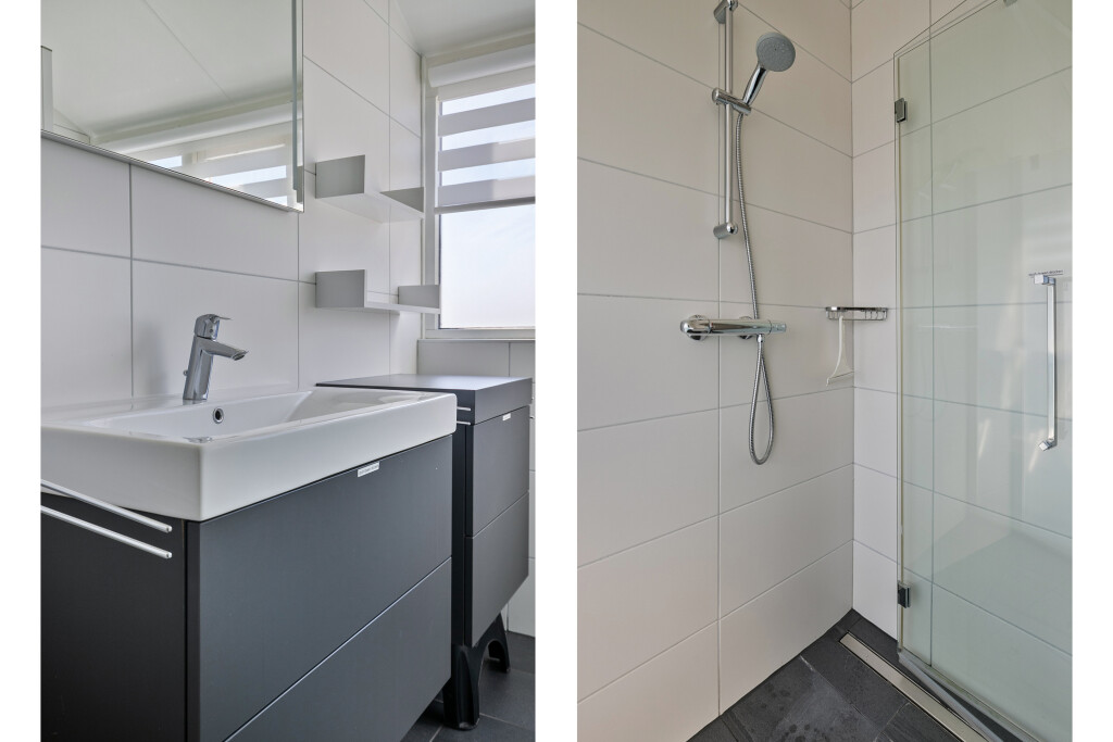 Op de eerste verdieping bevinden zich drie comfortabele ruime slaapkamers. De badkamer is uitgerust met een inloopdouche, wastafelmeubel en toilet. Daarnaast is er een extra bergruimte aanwezig, ideaal voor opslag. De gehele verdieping is voorzien van een laminaatvloer.