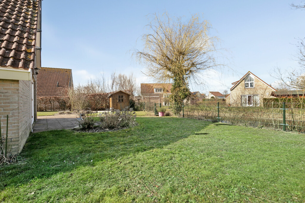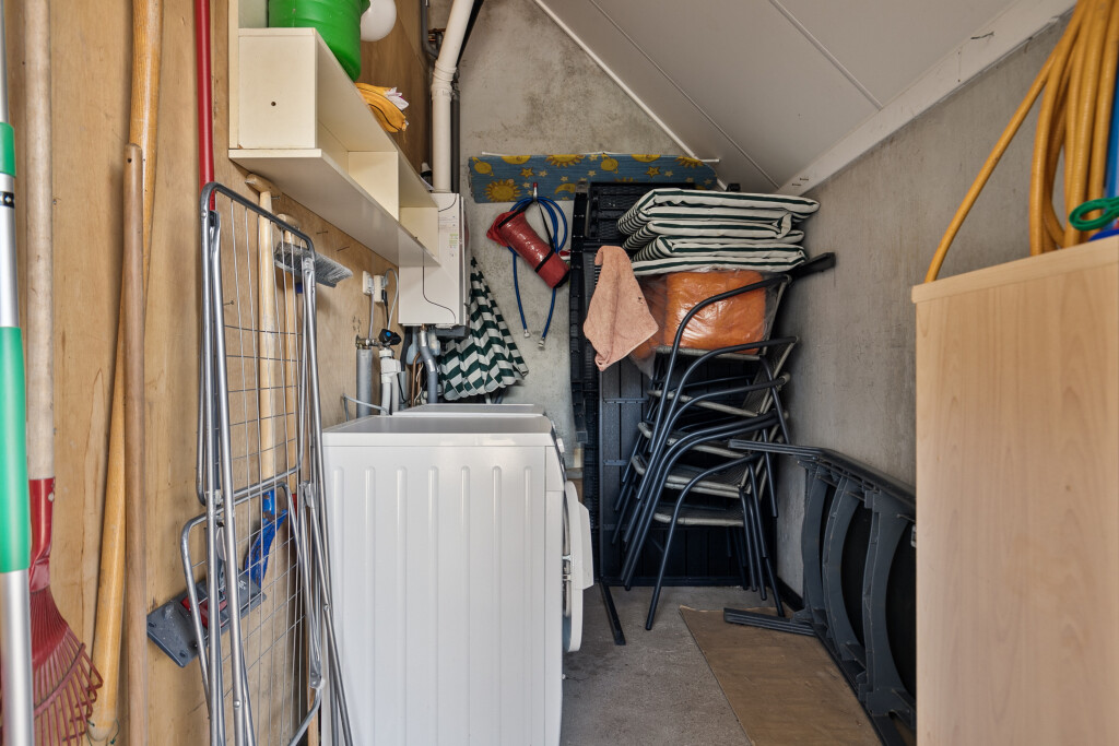 De ruime, onderhoudsvriendelijke achtertuin beschikt over een ruim terras met volop mogelijkheden voor een gezellige zithoek. Daarnaast beschikt de woning over een houten tuinhuis, ideaal voor extra opslag. Bovendien heeft de woning een eigen parkeerplaats op het perceel.