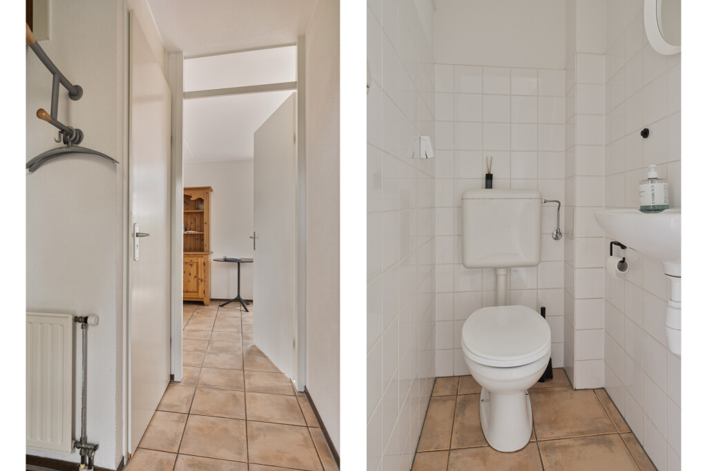 Op de eerste verdieping vindt u drie comfortabele slaapkamers, waarvan één met vaste kastruimte. De badkamer is uitgerust met een douche, ligbad, toilet en wastafel. Tevens is er een extra bergruimte aanwezig op deze verdieping.