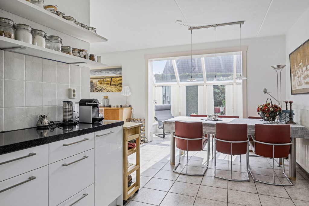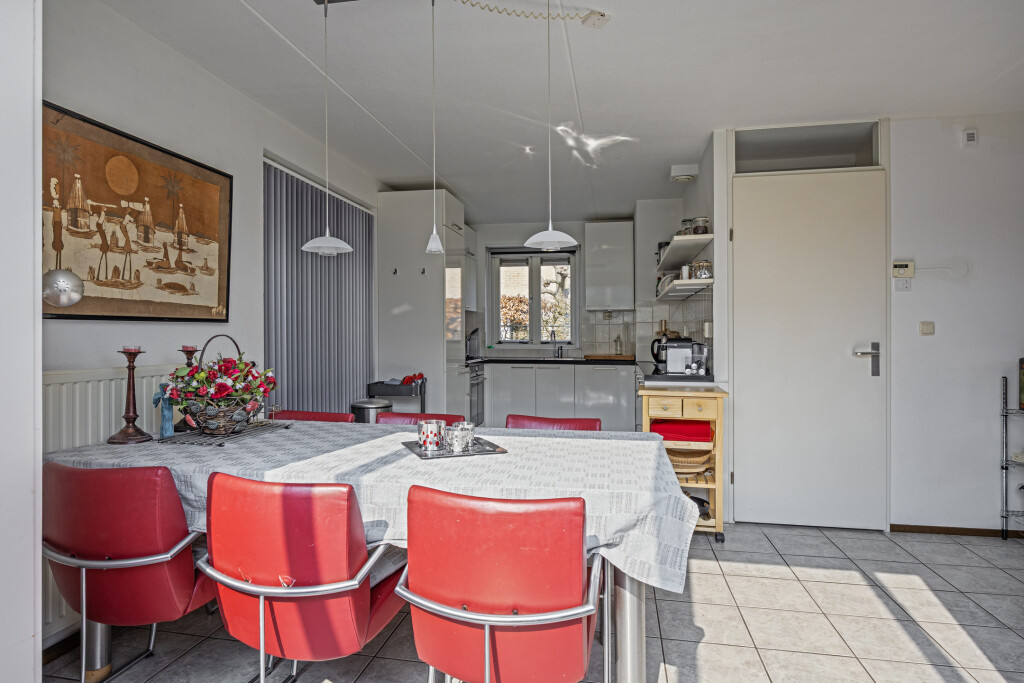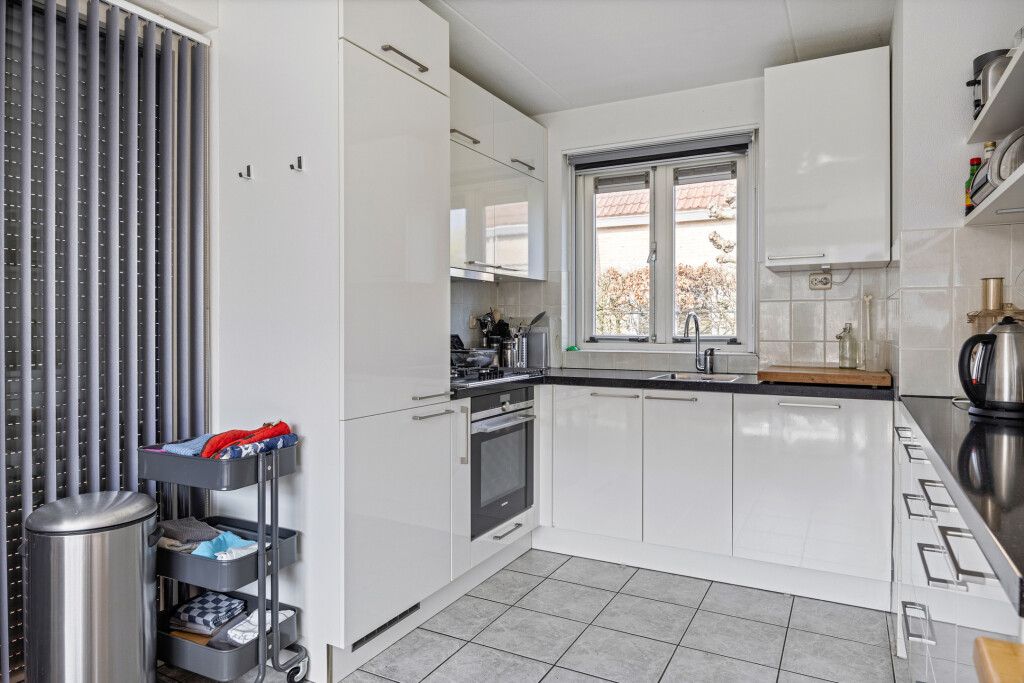 De open keuken uit 2018 is volledig uitgerust met inbouwapparatuur, zoals een 4-pits gaskookplaat, afzuigkap, oven, koelkast, vriesvak en een vaatwasser. Daarnaast beschikt de woning over een praktische berging die via buiten bereikbaar is met een wasmachineaansluiting.