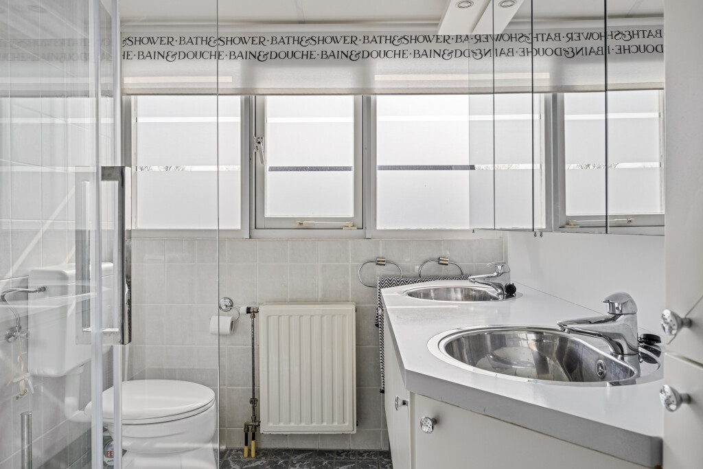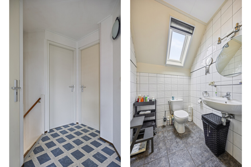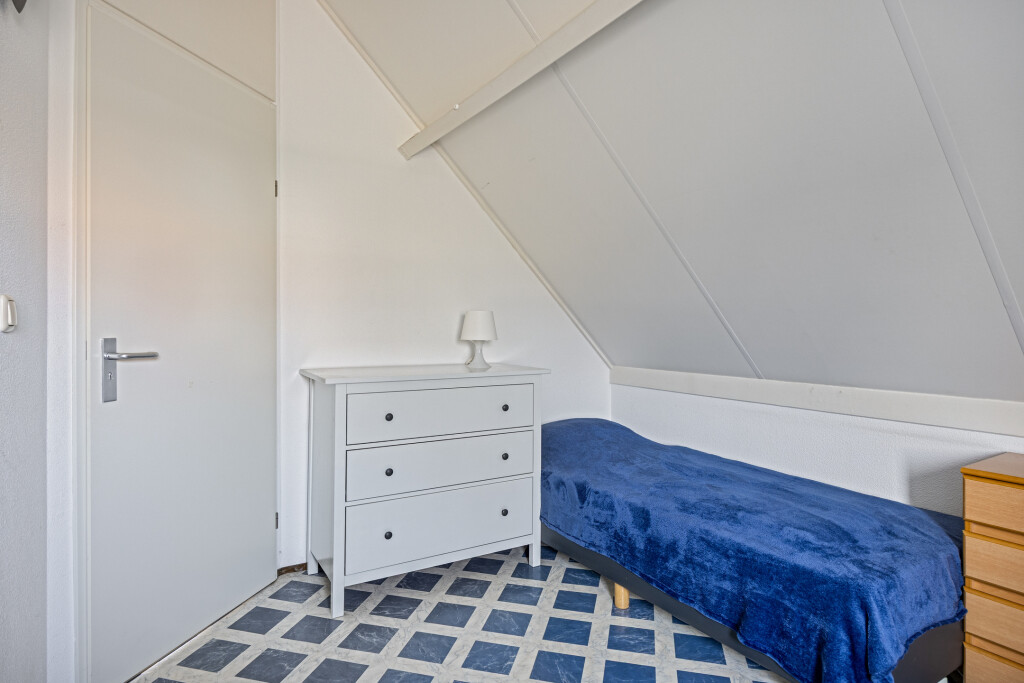 Op de eerste verdieping bevinden zicht drie comfortabele slaapkamers, de tweede badkamer en een praktische berging. De badkamer is voorzien van een douche, dubbel wastafelmeubel en een toilet. De gehele verdieping is voorzien van een vinyl vloer.