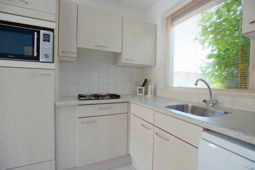 Tuin: door de ligging midden op de kavel heeft u tuin rondom de gehele woning. Aan de zijkant is er een terras met een zonnescherm, aan de achterzijde bevindt zich een tweede terras. Beide terrassen bieden voldoende ruimte voor een gezellige zit- en of eethoek. Aan de voorzijde van de woning is een eigen parkeervoorziening gerealiseerd.