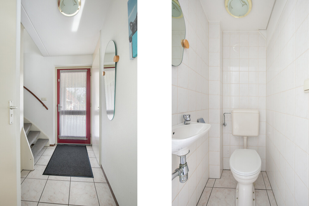 Begane grond: binnenkomst in de hal met trapopgang en toegang tot de toiletruimte en ruime woonkamer met open keuken voorzien van een 4-pits gaskoopplaat, afzuigkap, combi-oven, koelkast en een vaatwasser. Perfect voor het bereiden van de heerlijkste maaltijden. Verder kunt u de achtertuin bereiken via de openslaande tuindeuren in de woonkamer.