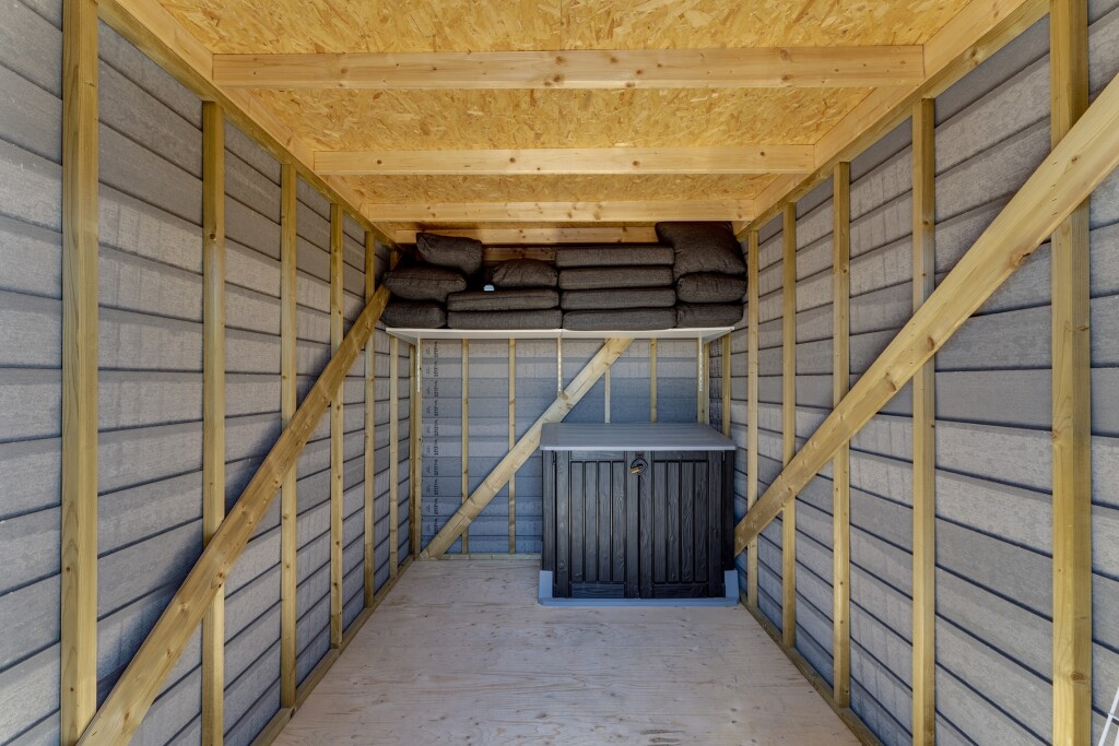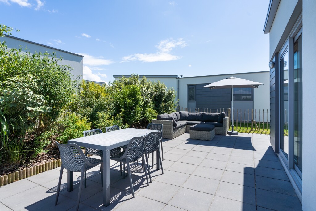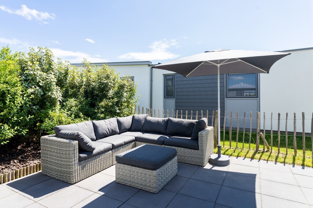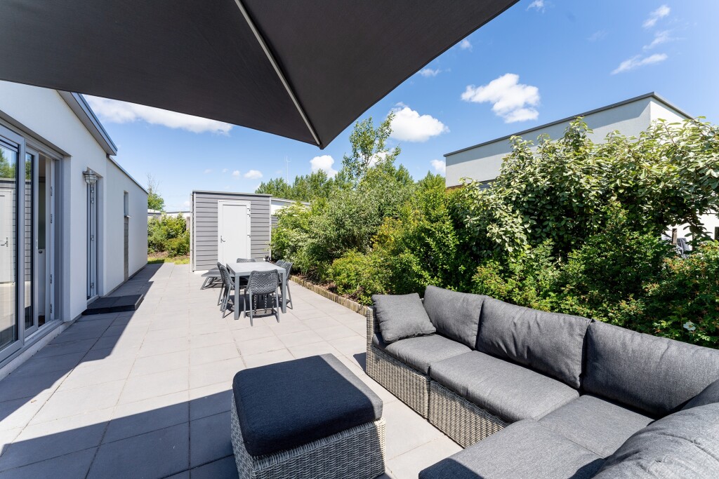 Buiten vindt u een ruim terras met loungesset waar u optimaal kunt genieten van de frisse lucht en de zon. Het terras biedt voldoende ruimte voor een eettafel en loungestoelen, ideaal voor ontspanning en gezellige momenten met vrienden en familie. Daarnaast beschikt de lodge over een eigen parkeergelegenheid en een tuinhuis.