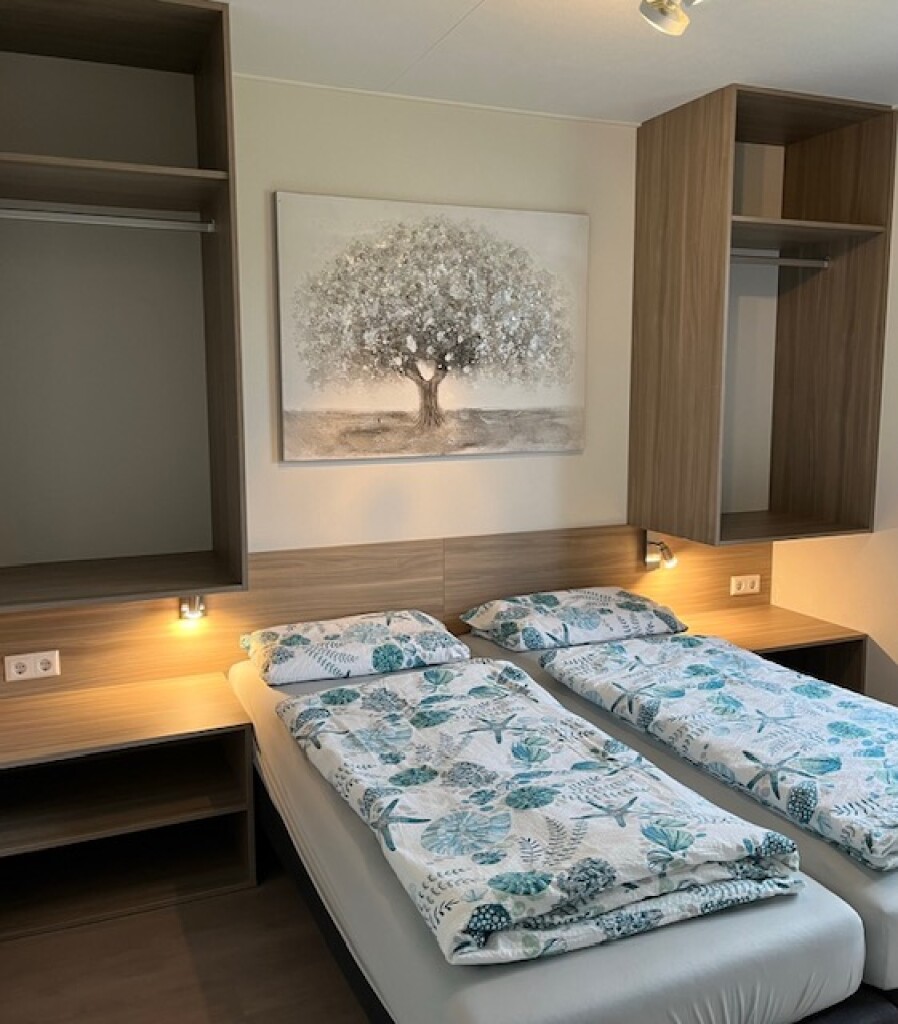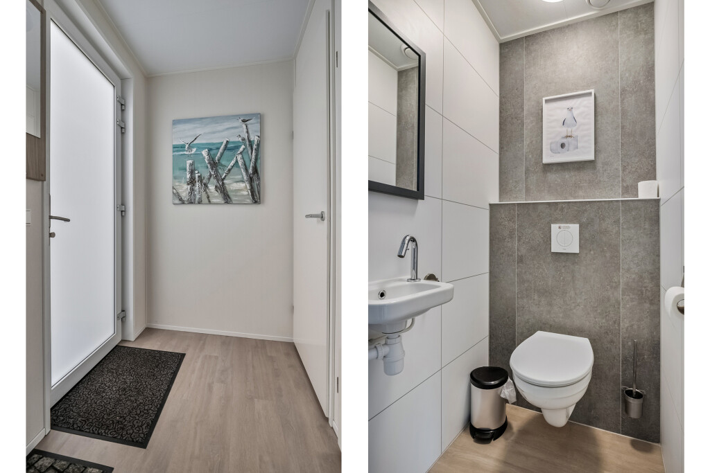 Op vakantiepark Zeebad, op een steenworp afstand van het strand van Breskens, bieden wij deze moderne, vrijstaande lodge aan. De woning is gelegen op een ruim perceel van 500 m² eigen grond en beschikt over een lichte, sfeervolle woonkamer, twee slaapkamers met en-suite badkamers en een royaal terras met steiger aan het water.