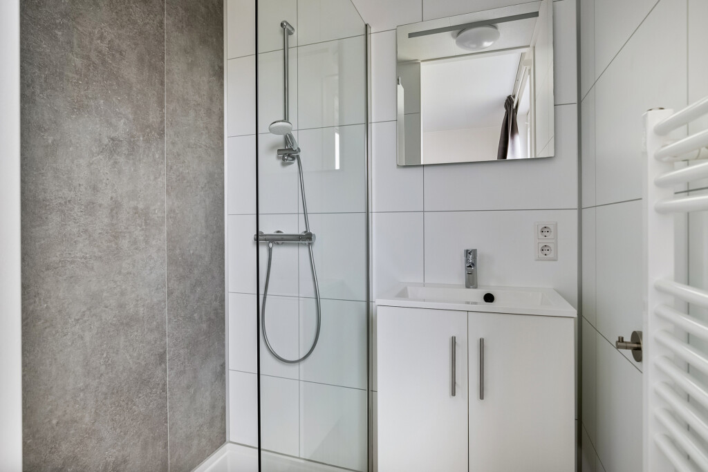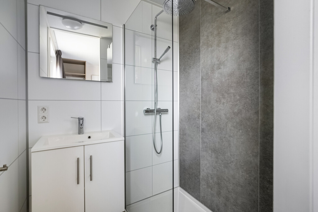 De woning beschikt over twee comfortabele slaapkamers, beide met een en-suite badkamer voorzien van een douche en wastafelmeubel. Eén van de slaapkamers beschikt tevens over een vaste kast. Verder is er een berging en een aparte toiletruimte met een hangtoilet en fontein.