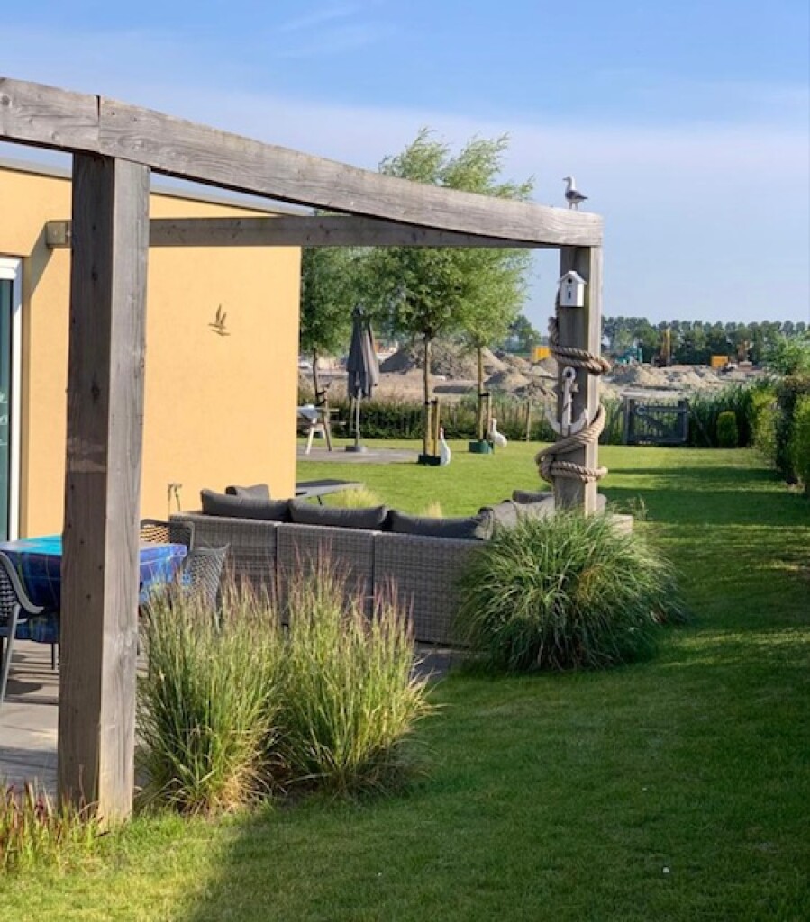 Rondom de woning ligt een ruime tuin, waar u optimaal kunt genieten van het buitenleven. Het terras is voorzien van een picknicktafel en een decoratieve palenwand, die zorgt voor extra privacy. Daarnaast beschikt de tuin over een steiger aan het water, een heerlijke plek om te ontspannen en te genieten van de rust. Aan de voorkant van de lodge bevindt zich nog een extra terras met loungesset en een handige schuur voor extra opslagruimte. Daarnaast beschikt de lodge over een eigen parkeergelegenheid en een tuinhuis.