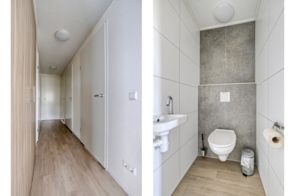 De woning beschikt over drie comfortabele slaapkamers, wat het object ook zeer geschikt maakt voor gezinnen. De badkamer is voorzien van een douche en een wastafelmeubel. Daarnaast is er een separaat toilet met fonteintje en extra bergruimte in de hal, inclusief aansluiting voor een wasmachine.