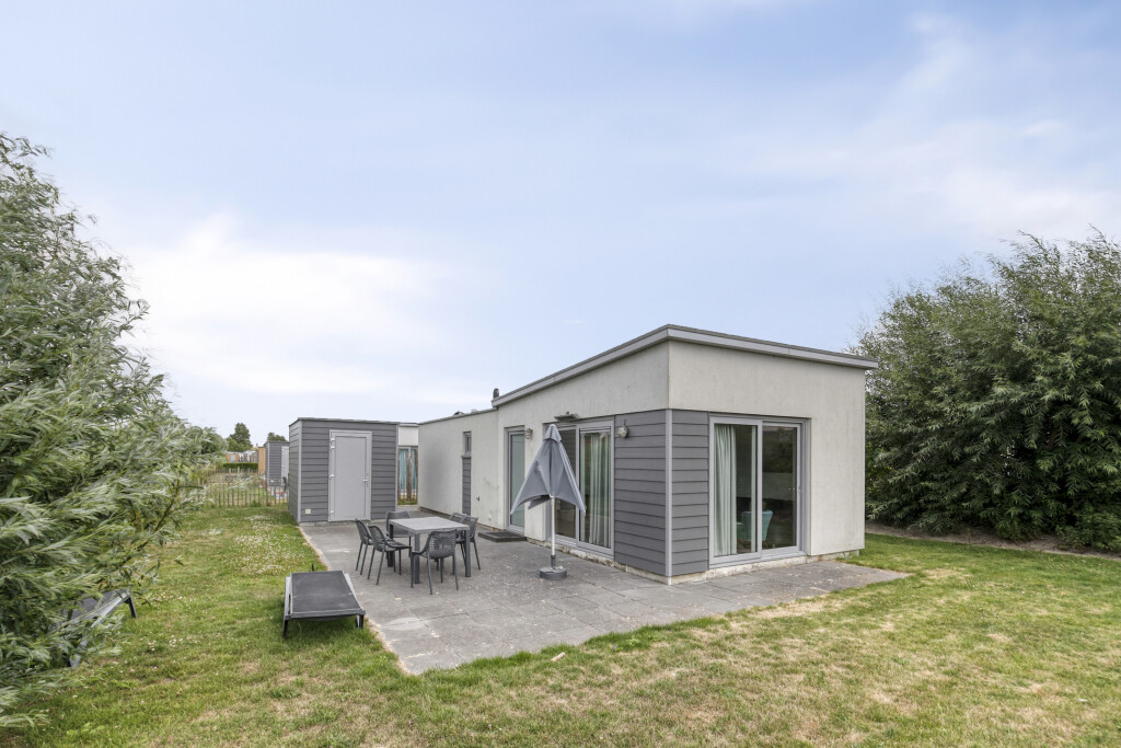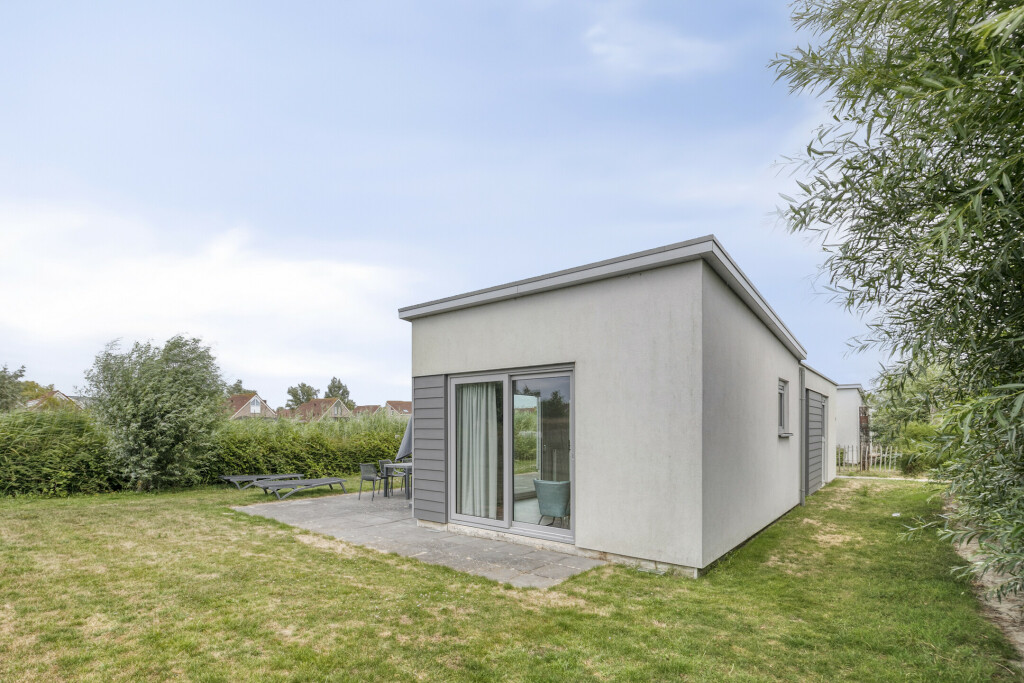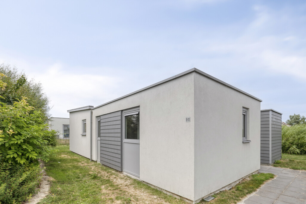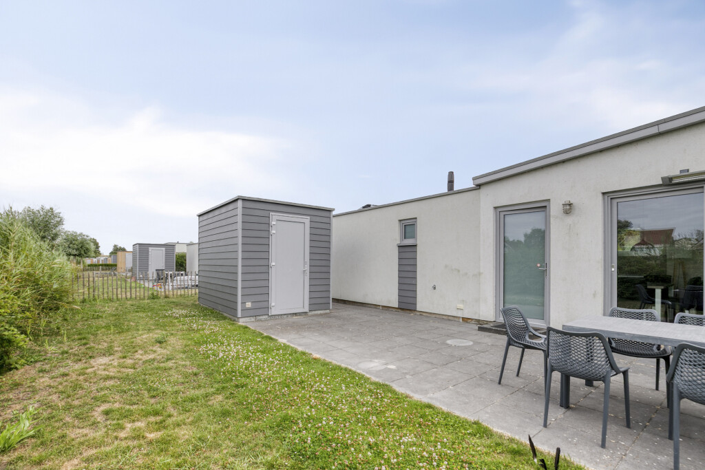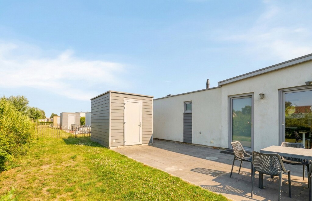 De lodge beschikt over een verzorgd en zonnig terras met voldoende ruimte voor een zit- en/of eethoek, waar u heerlijk buiten kunt genieten van de zon en de frisse zeelucht. Verder beschikt het perceel over een eigen berging voor extra opslag en een parkeerplaats op eigen terrein, direct naast de woning.