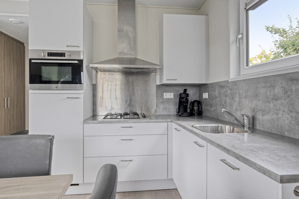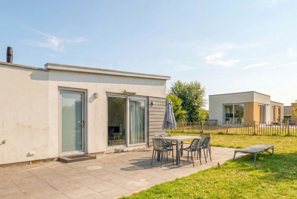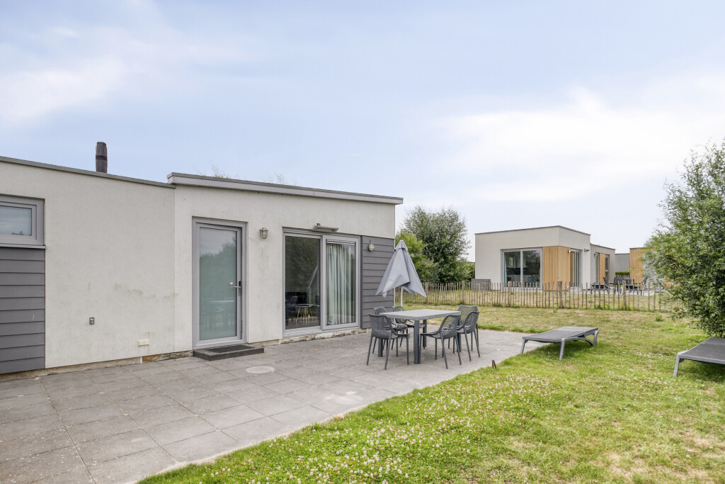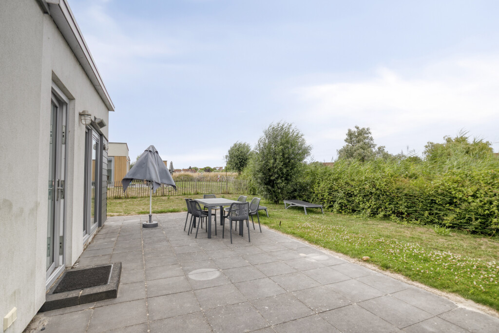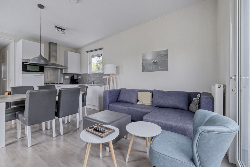 De lodge beschikt over een verzorgd en zonnig terras met voldoende ruimte voor een zit- en/of eethoek, waar u heerlijk buiten kunt genieten van de zon en de frisse zeelucht. Verder beschikt het perceel over een eigen berging voor extra opslag en een parkeerplaats op eigen terrein, direct naast de woning.
