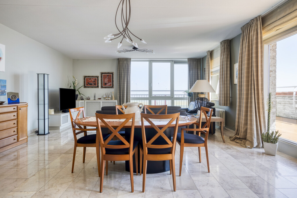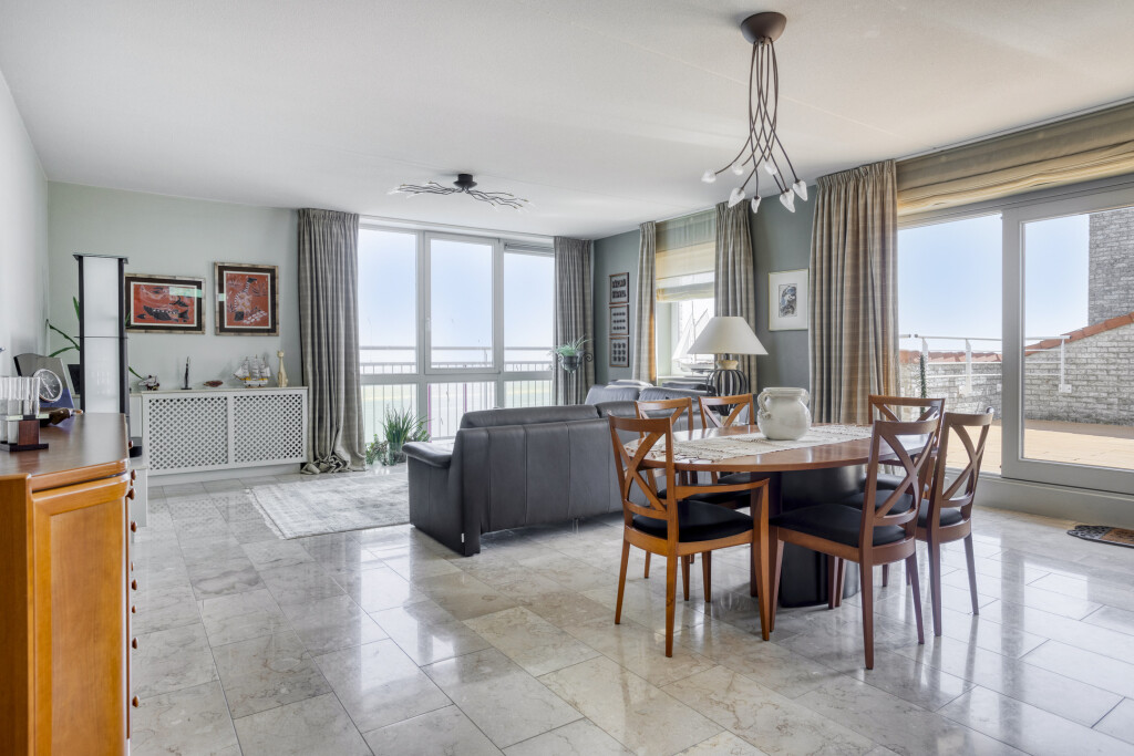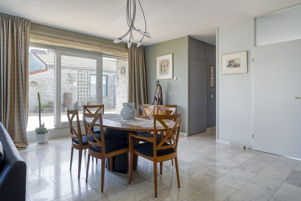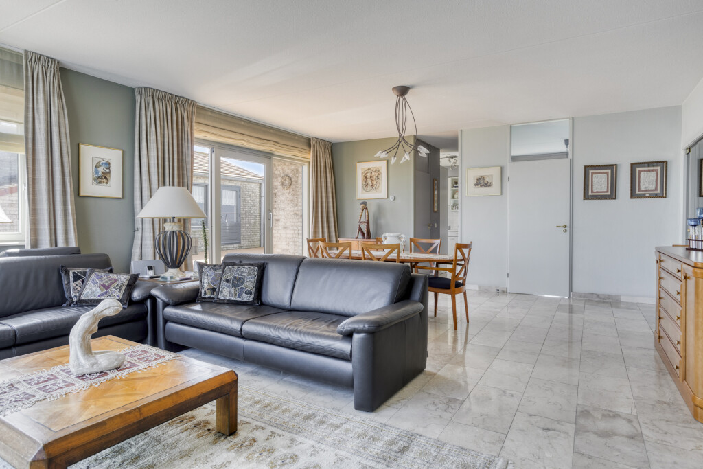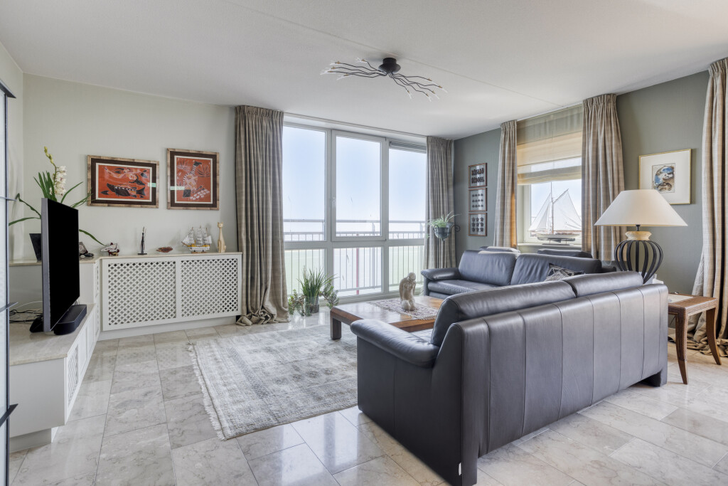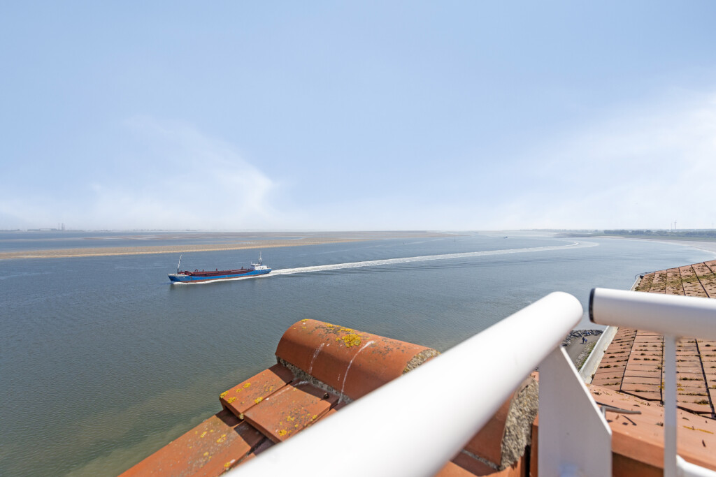 U betreedt het appartement via een ruime hal met een aparte toiletruimte en een vaste kast. Vanuit de hal heeft u toegang tot alle vertrekken van de woning. De lichte en royale woonkamer is voorzien van grote raampartijen die zorgen voor veel natuurlijk daglicht. Via de schuifpui bereikt u het ruime dakterras, waar u geniet van een werkelijk schitterend uitzicht op zowel de Westerschelde als het achterliggende Zeeuwse landschap. De open keuken sluit direct aan op de woonkamer en is volledig uitgerust met een 4-pits keramische kookplaat, afzuigkap, combi-oven, oven, koelkast met vriesvak en vaatwasser.