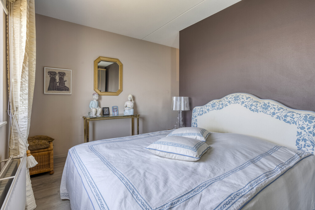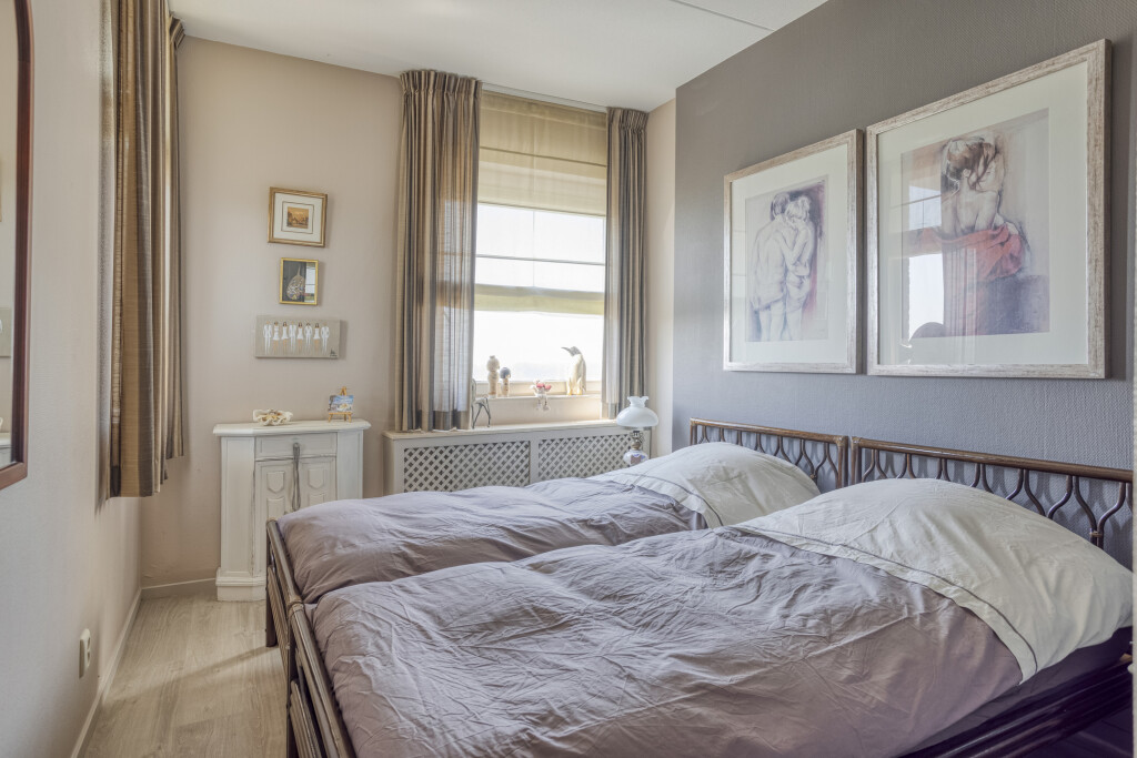 Het appartement beschikt over drie slaapkamers. Eén slaapkamer biedt via een schuifpui toegang tot het balkon aan de landzijde. De tweede slaapkamer (eveneens aan de landzijde) is voorzien van een badkamer en-suite met douche en wastafel. De master bedroom aan zeezijde beschikt over een badkamer en-suite met dubbel wastafelmeubel, toilet en een ligbad.