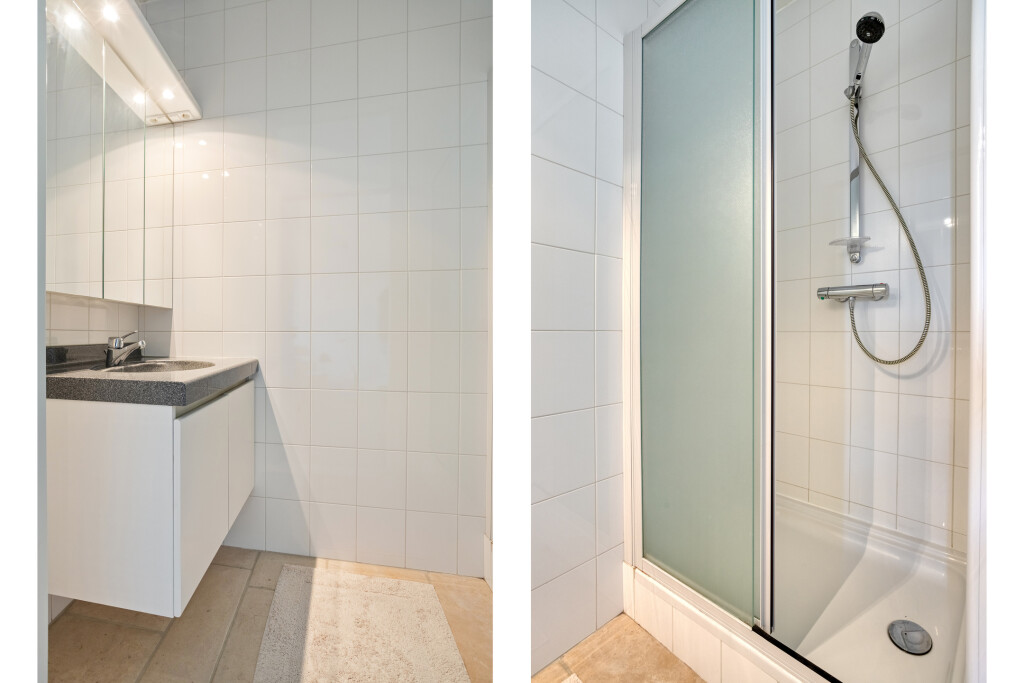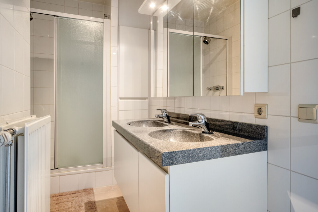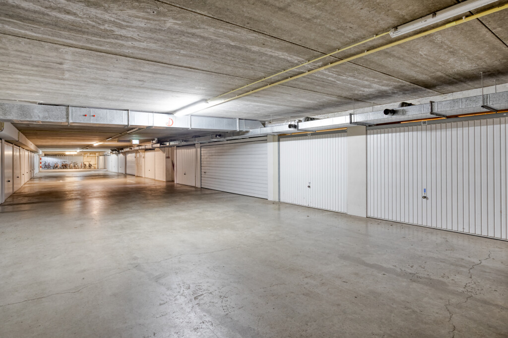 Bij het appartement hoort een afsluitbare dubbele garagebox, gelegen in de parkeergarage onder het gebouw. Deze is bereikbaar via zowel de lift als de auto-ingang. In de dubbele garagebox bevindt zich bovendien nog twee extra bergingen, ideaal voor het opbergen van fietsen, gereedschap of seizoensspullen.
