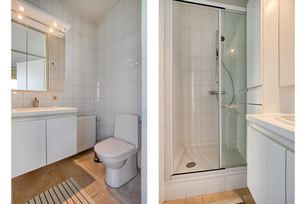 Aan de hal grenzen de overige drie slaapkamers. Twee hiervan zijn voorzien van een eigen badkamer met douche en wastafel. De slaapkamer aan de achterzijde en de hal bieden direct toegang tot het riante dakterras. Hier geniet u in alle rust van het uitzicht over het Zeeuwse landschap en de contouren van Breskens.