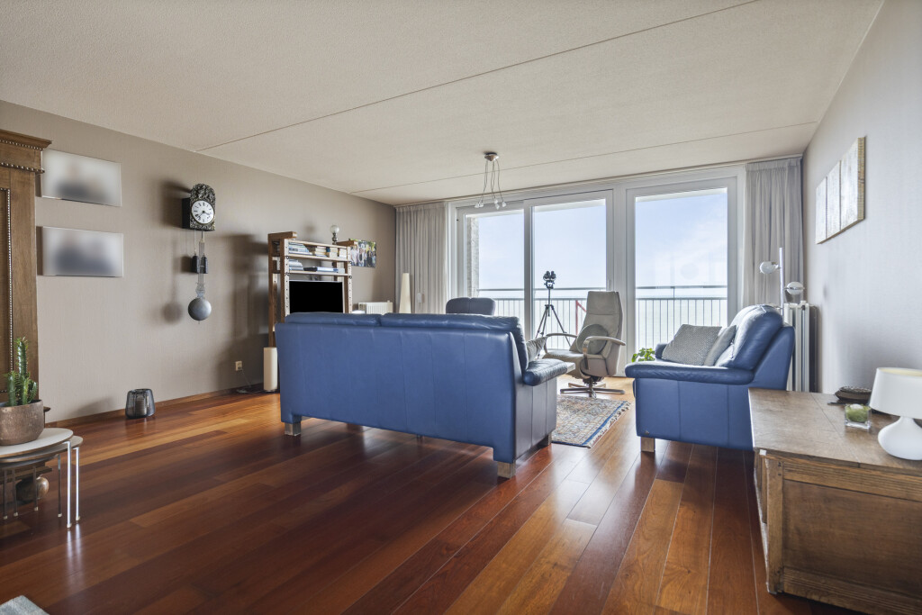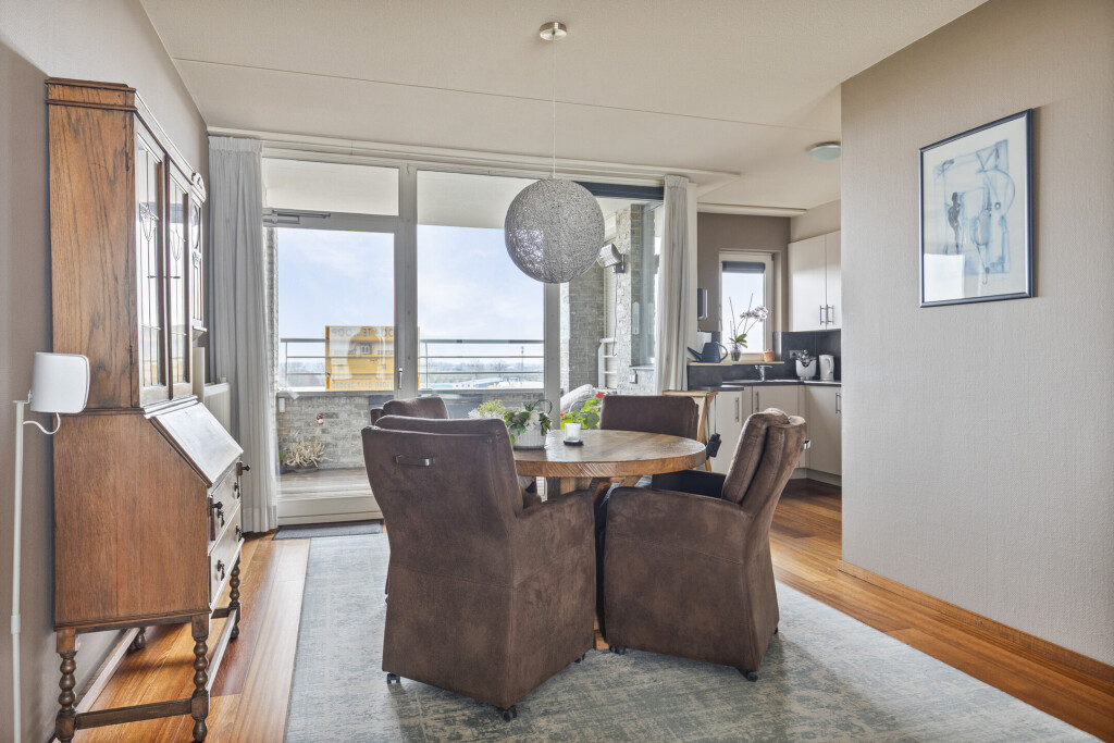 Bij binnenkomst in het appartement komt u in de hal die toegang biedt tot alle vertrekken. De ruime woonkamer voelt direct prettig en licht aan dankzij de grote raampartijen. De houten vloer geeft de ruimte een warme en stijlvolle uitstraling. Vanuit de woonkamer heeft u toegang tot beide balkons. Aan de zeezijde geniet u van een indrukwekkend panorama uitzicht over de Westerschelde, waar schepen langzaam voorbij varen en het uitzicht ieder moment van de dag verandert. Aan de landzijde kijkt u uit over het achterland van Breskens en vindt u een rustige plek om te ontspannen in de middag- of avondzon.