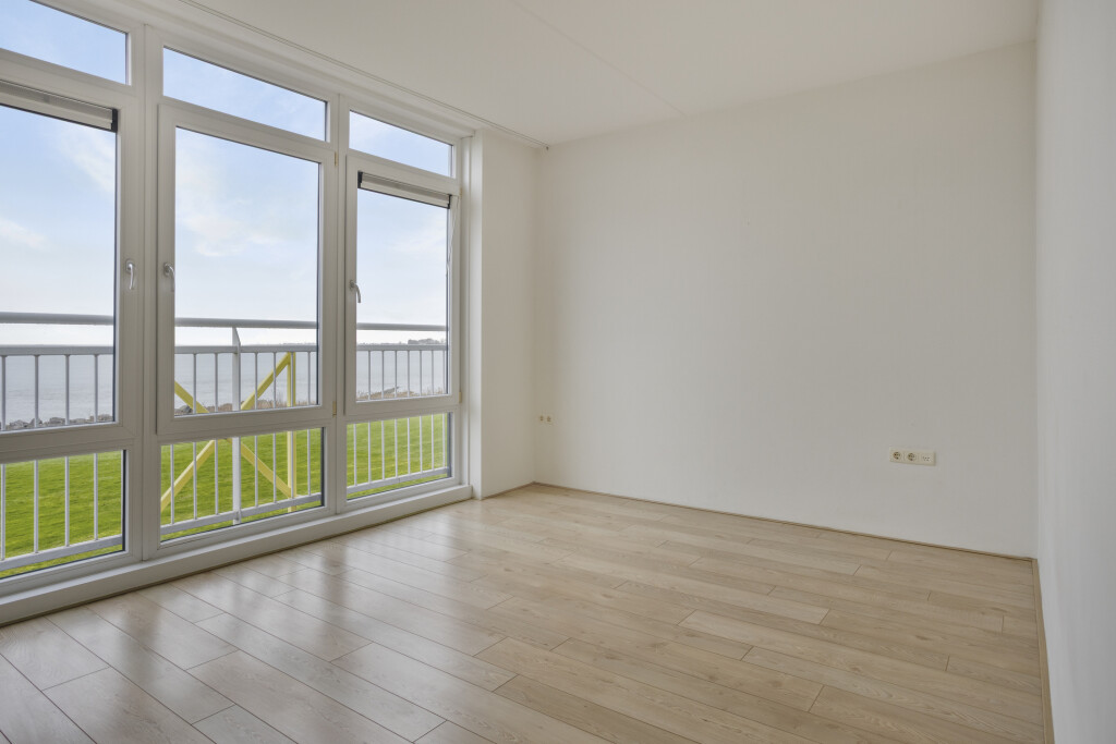 U betreedt het appartement via de hal, die toegang biedt tot alle vertrekken. De royale woonkamer is heerlijk licht dankzij de grote raampartijen en beschikt over twee balkons: één aan de zeezijde met prachtig uitzicht over de Westerschelde en één aan de landzijde met zicht op het achterland van Breskens. Hierdoor kunt u op elk moment van de dag genieten van zon en uitzicht.