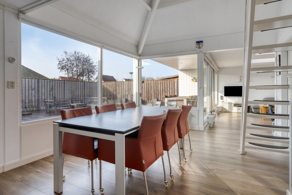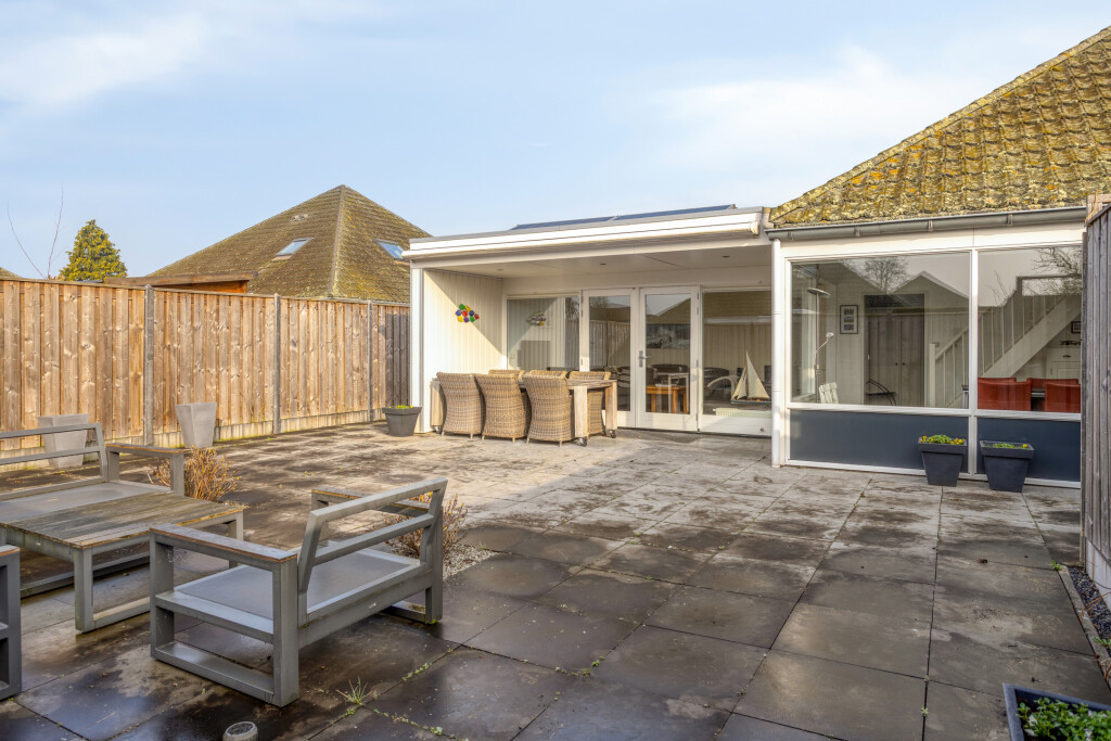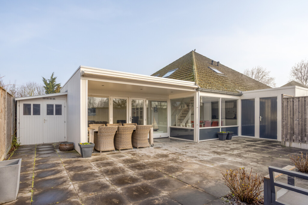 De woning beschikt over een verzorgde en zonnige tuin op het zuiden. Onder de overkapping kunt u beschut genieten van het buitenleven, ongeacht het seizoen. Parkeren is mogelijk op eigen terrein. Daarnaast beschikt de woning over twee aangebouwde bergingen, ideaal voor het opbergen van fietsen, tuinmeubilair of strandspullen.