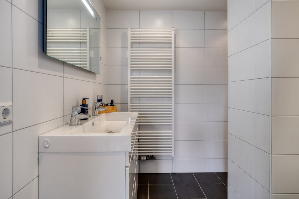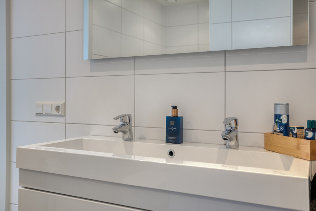 Op de begane grond bevinden zich tevens een nette en ruime slaapkamer en de badkamer. De badkamer is vernieuwd in 2012 en beschikt over een inloopdouche, dubbel wastafelmeubel en een toilet.