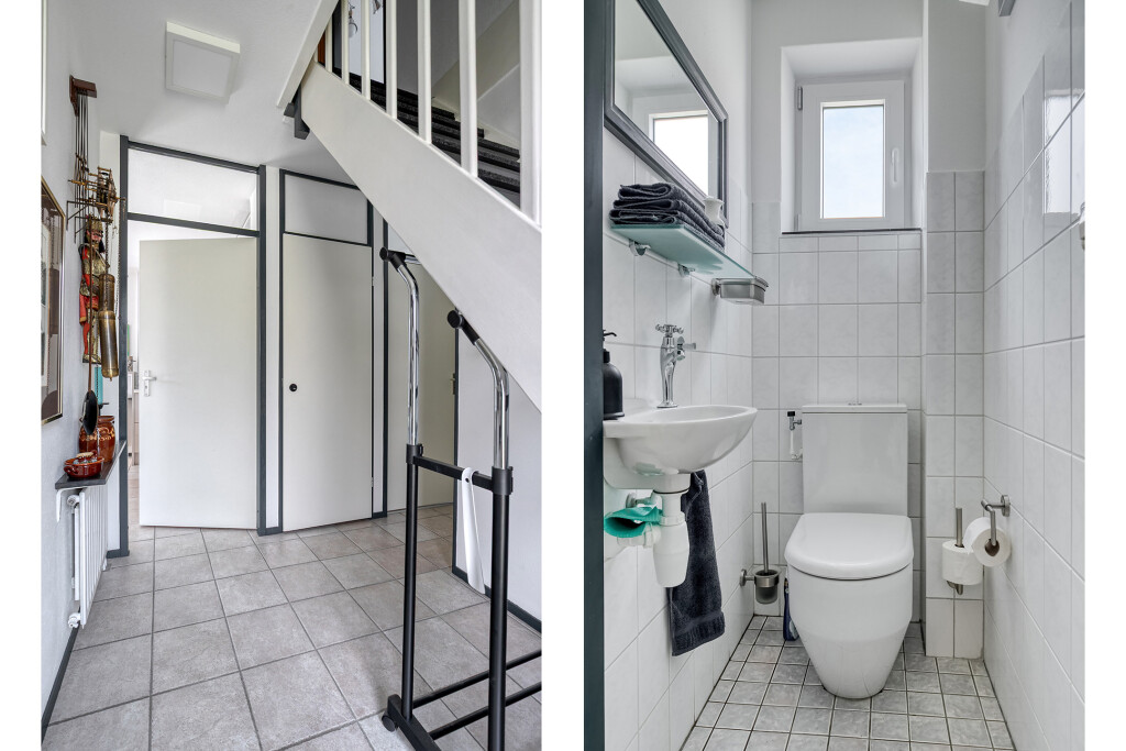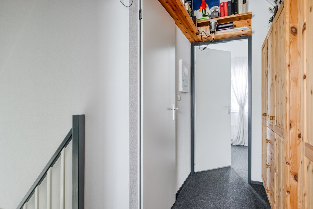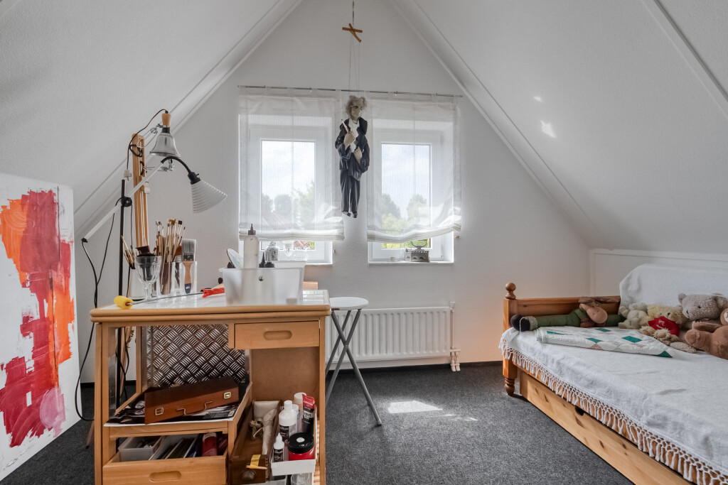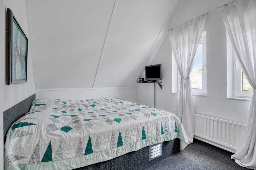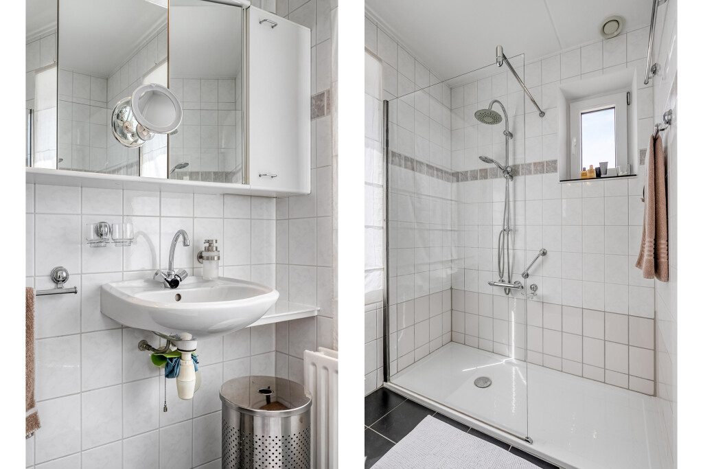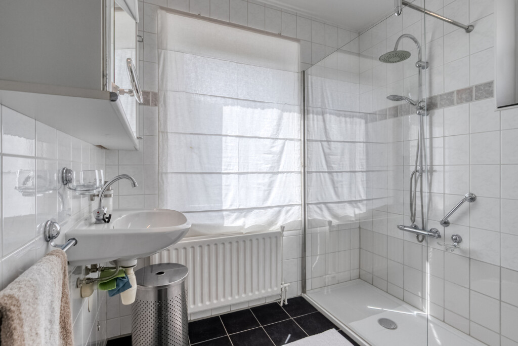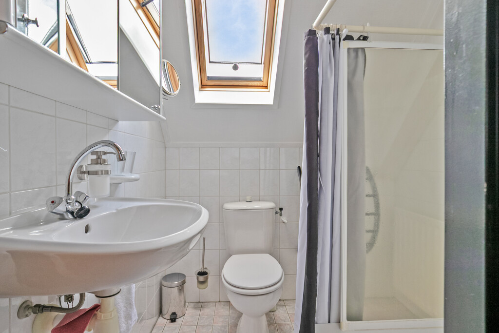 Op de eerste verdieping bevinden zich nog twee volwaardige slaapkamers. De tweede badkamer beschikt over een douche, wastafel en toilet. Daarnaast biedt de verdieping extra opbergruimte in de vorm van vaste kasten.