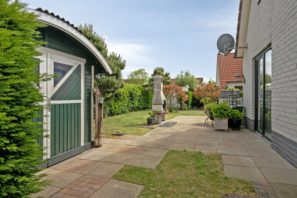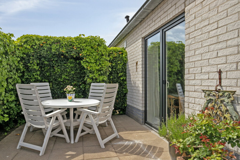 Rondom de woning ligt een onderhoudsvriendelijke tuin met terras. Door de gunstige ligging kunt u hier de hele dag door genieten van de zon. De tuin biedt voldoende ruimte voor buitenmeubilair en is omringd door groen voor extra privacy. Voor de woning is ruimte om te parkeren op eigen terrein.
