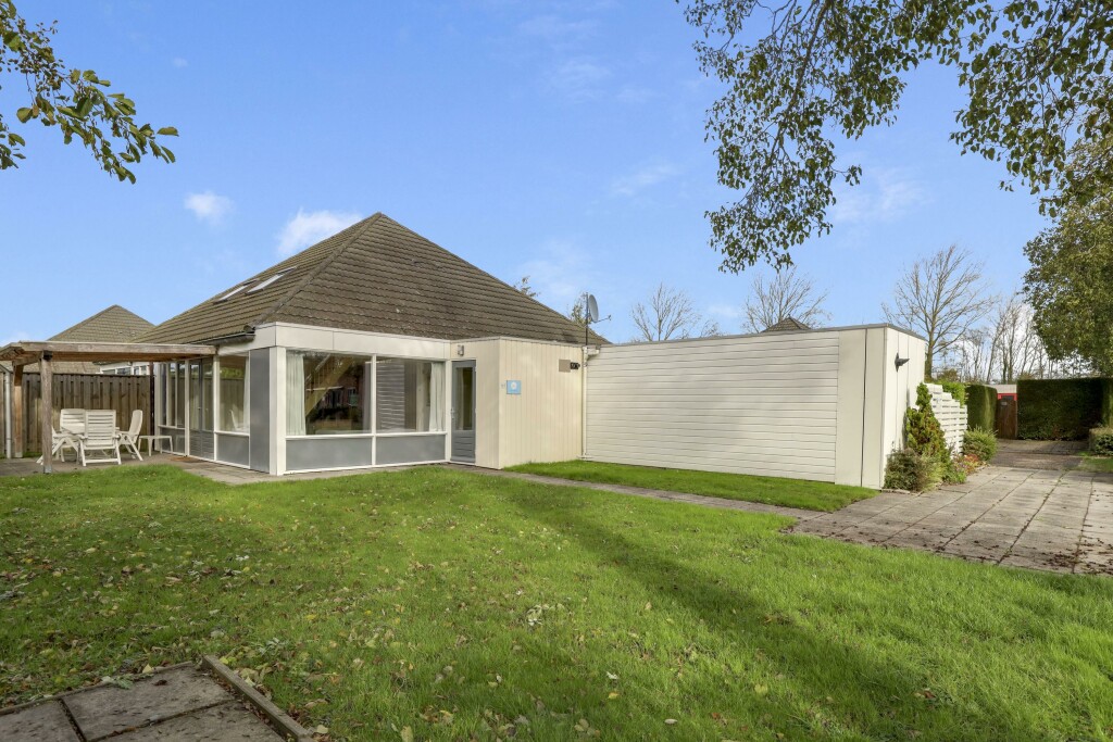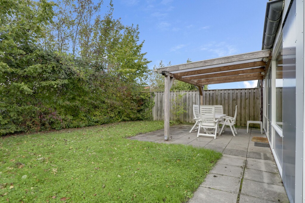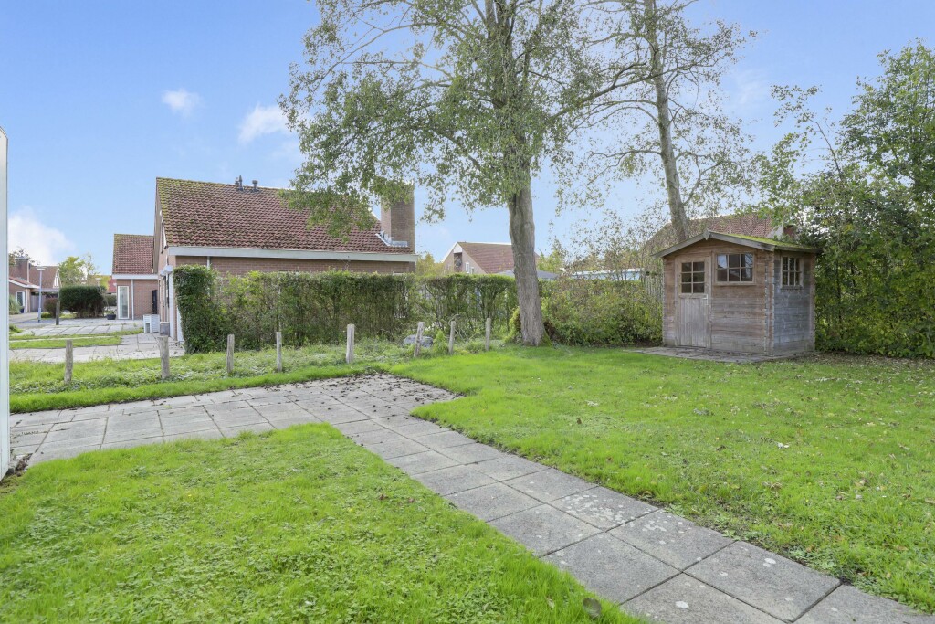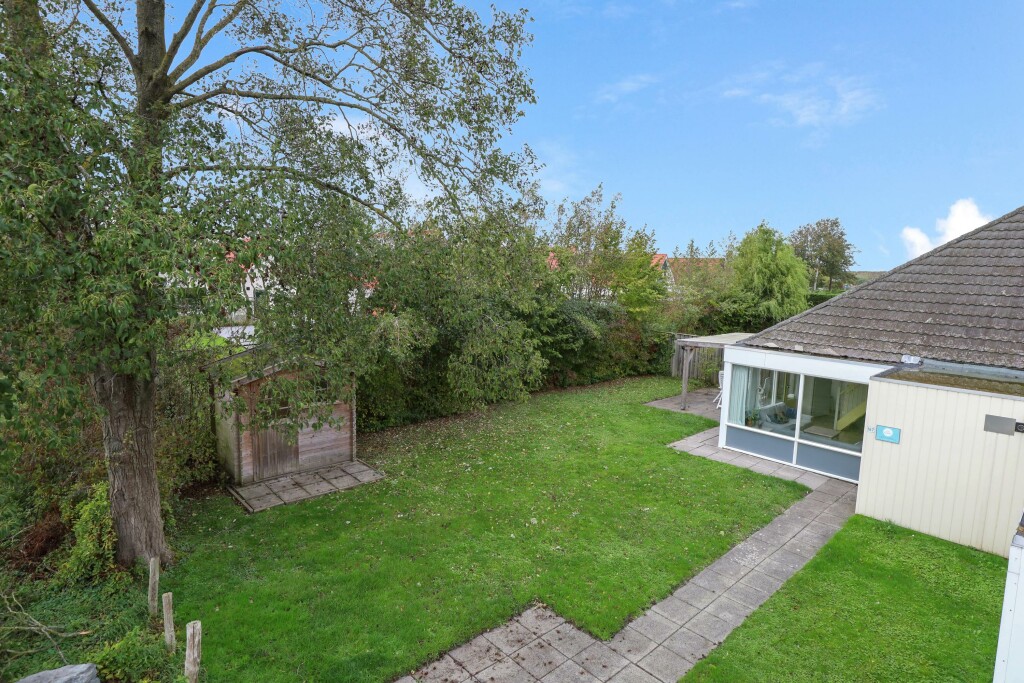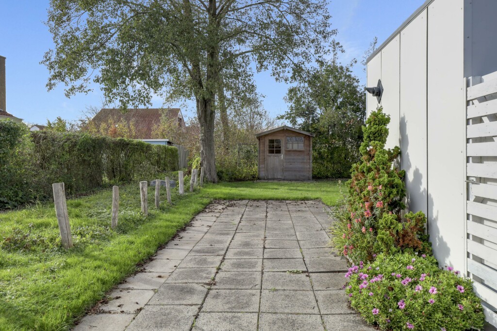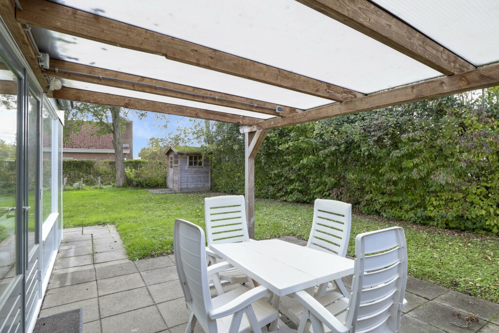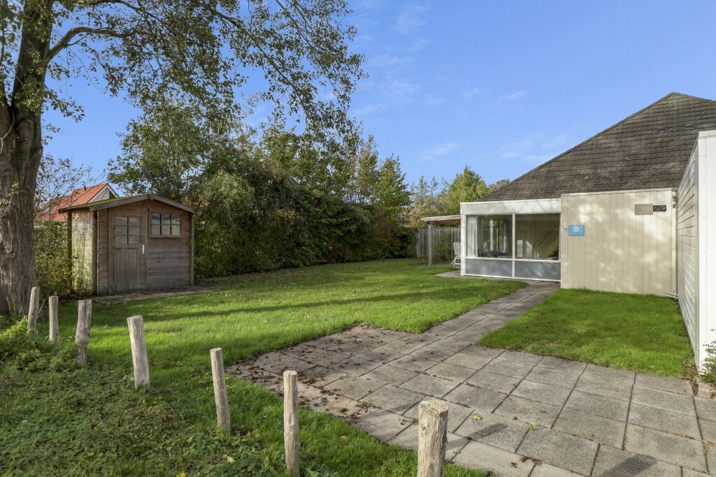 De woning beschikt over een ruime, zonnige tuin met een zuidwestelijke ligging. Onder de ruime overkapping kunt u het hele jaar door beschut genieten van het buitenleven. Het tuinhuis biedt extra bergruimte voor fietsen, tuinmeubilair of strandspullen.