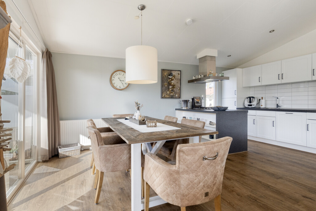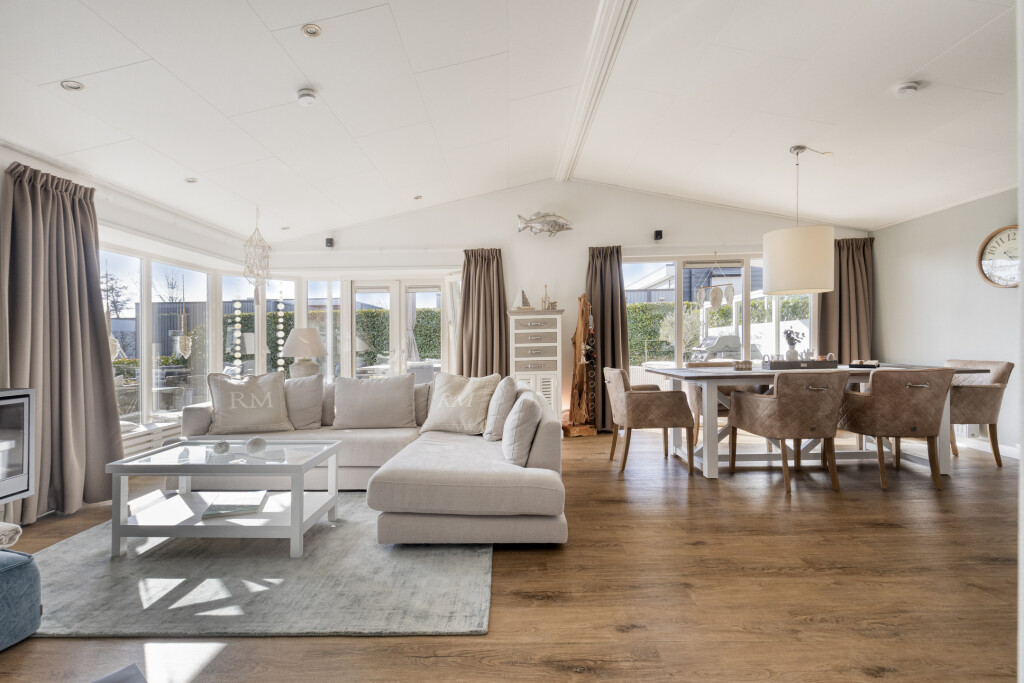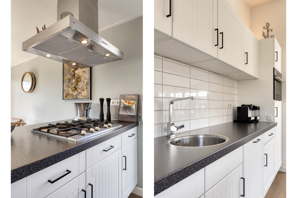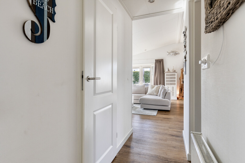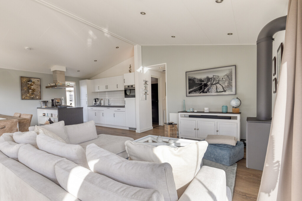 U komt binnen in de entree, die toegang biedt tot alle vertrekken. De ruime en lichte woonkamer met eethoek beschikt over grote raampartijen en staat in directe verbinding met het terras. Dit zorgt voor een prettige lichtinval en een vloeiende overgang naar buiten. De woonkamer is sfeervol ingericht en voorzien van een luxe gaskachel. De open keuken sluit naadloos aan op de woonkamer en is uitgerust met een kookeiland en diverse inbouwapparatuur, waaronder een 4-pits gaskookplaat, afzuigkap, oven, koelkast met vriesvak en een vaatwasser (vernieuwd in 2020).