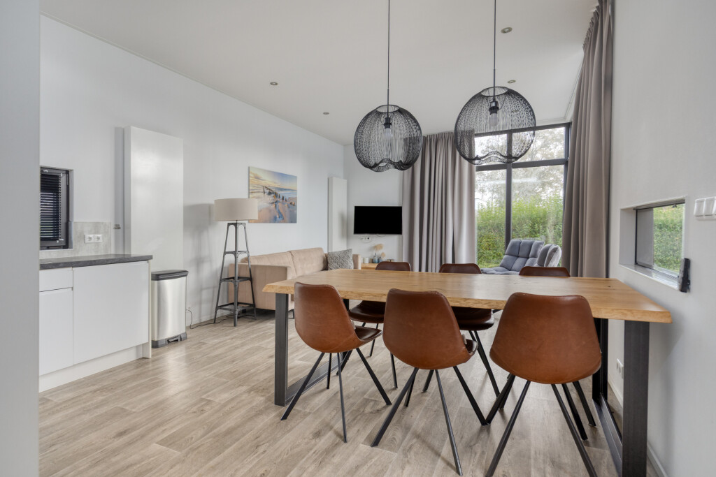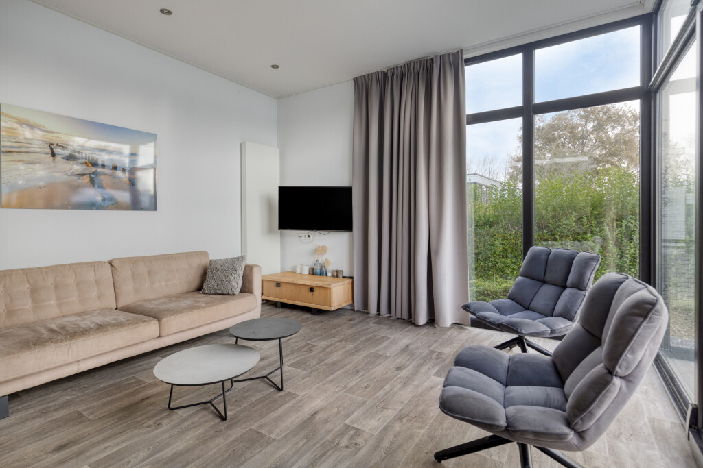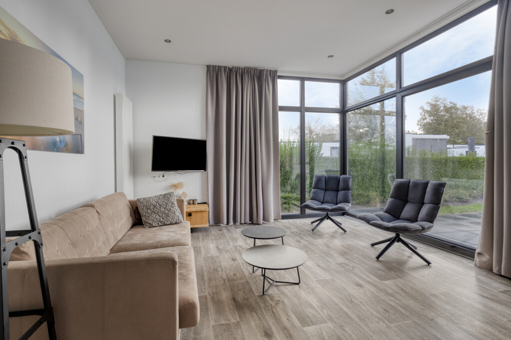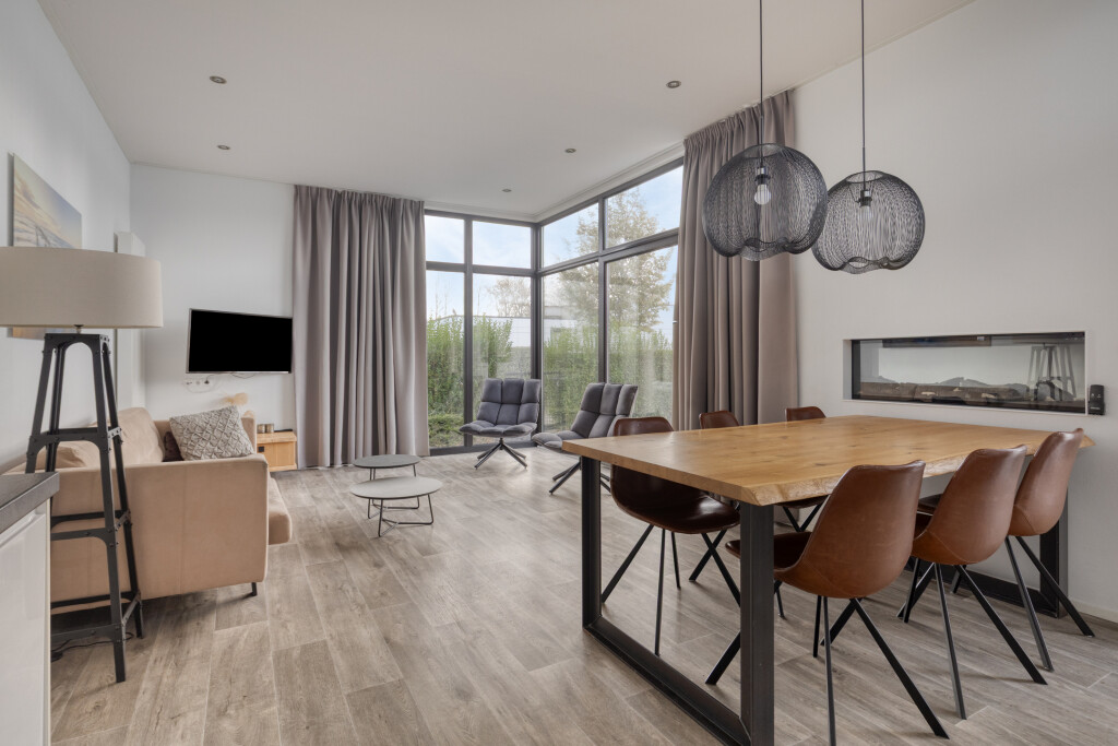 Het chalet is smaakvol ingericht en beschikt onder andere over grote raampartijen, een lichte en ruime woonkamer met elektrische haard, een volledig uitgeruste keuken en drie comfortabele slaapkamers. De ligging op loopafstand van zee en strand maakt dit een ideale plek voor rust en ontspanning. Daarnaast kunt u gebruikmaken van de diverse faciliteiten die EuroParcs Schoneveld te bieden heeft.