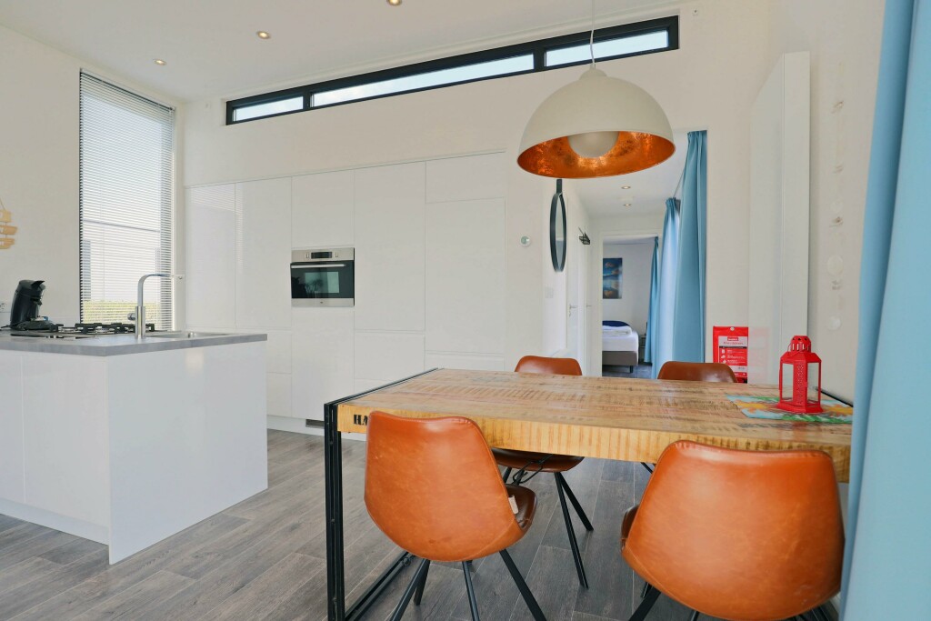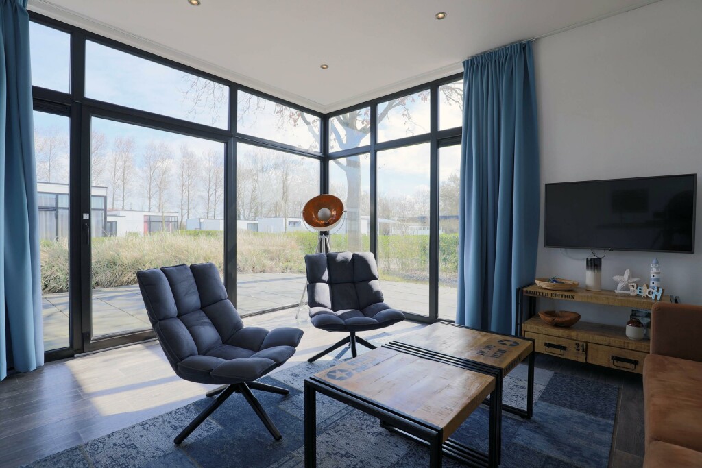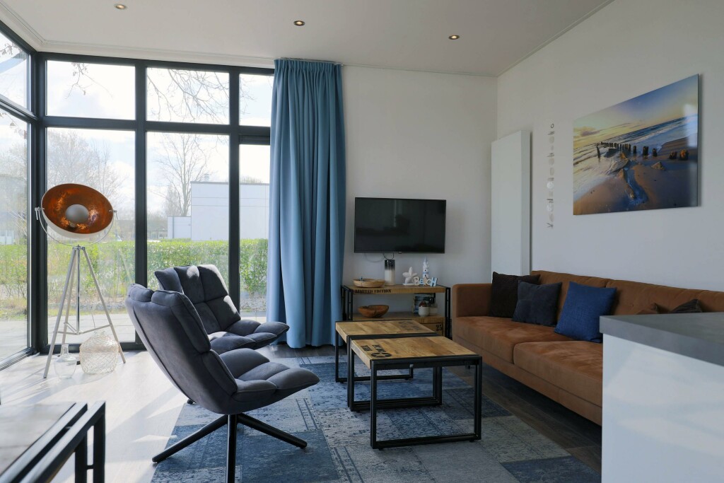 Het chalet is smaakvol ingericht en beschikt o.a. over grote raampartijen, een lichte en ruime woonkamer met elektrische haard, volledig uitgeruste keuken en twee slaapkamers. Het chalet is gelegen op loopafstand van zee en strand. Ook kunt u gebruik maken van verschillende faciliteiten die Europarcs Schoneveld te bieden heeft.