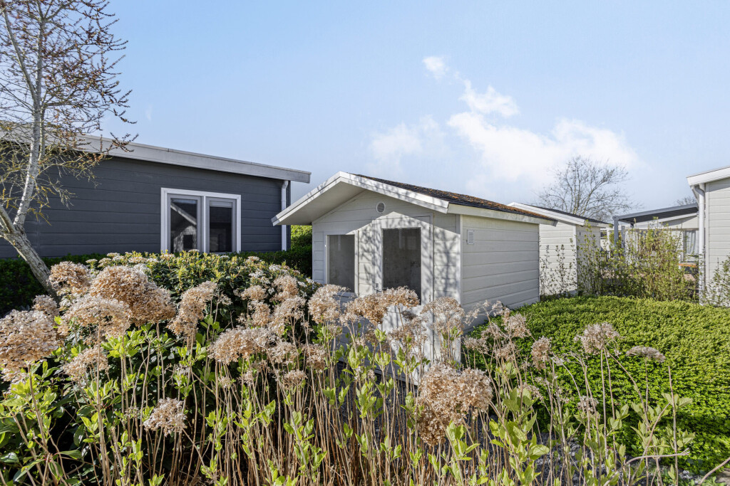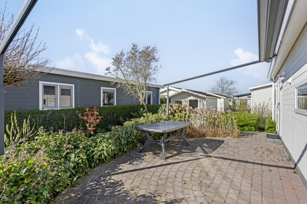 De zonnige en ruim tuin biedt op het terras voldoende ruimte voor een gezellige zit- en/of eethoek. Het terras beschikt over een luifel met een elektrisch zonnescherm, ideaal voor een beschutte zithoek. Daarnaast beschikt het chalet over een tuinhuis, ideaal voor extra opslagruimte.