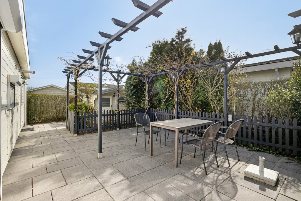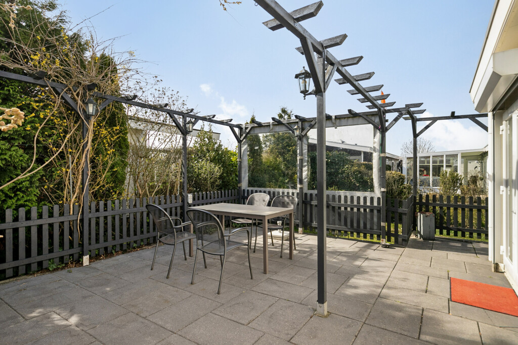 De tuin biedt een ruim terras die is voorzien van een mooi pergola, waarmee u een gezellige zit- en/of eethoek kunt creëren. De tuin is volledig omheind, wat zorgt voor extra privacy. Verder is er een houten tuinhuis aanwezig, handig voor extra opslagruimte.
