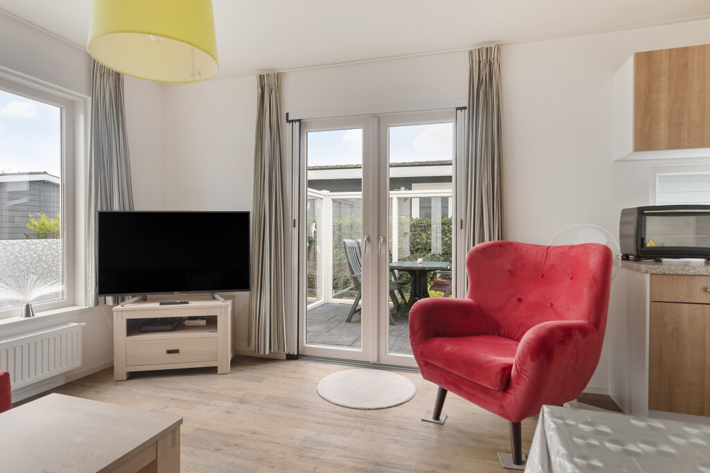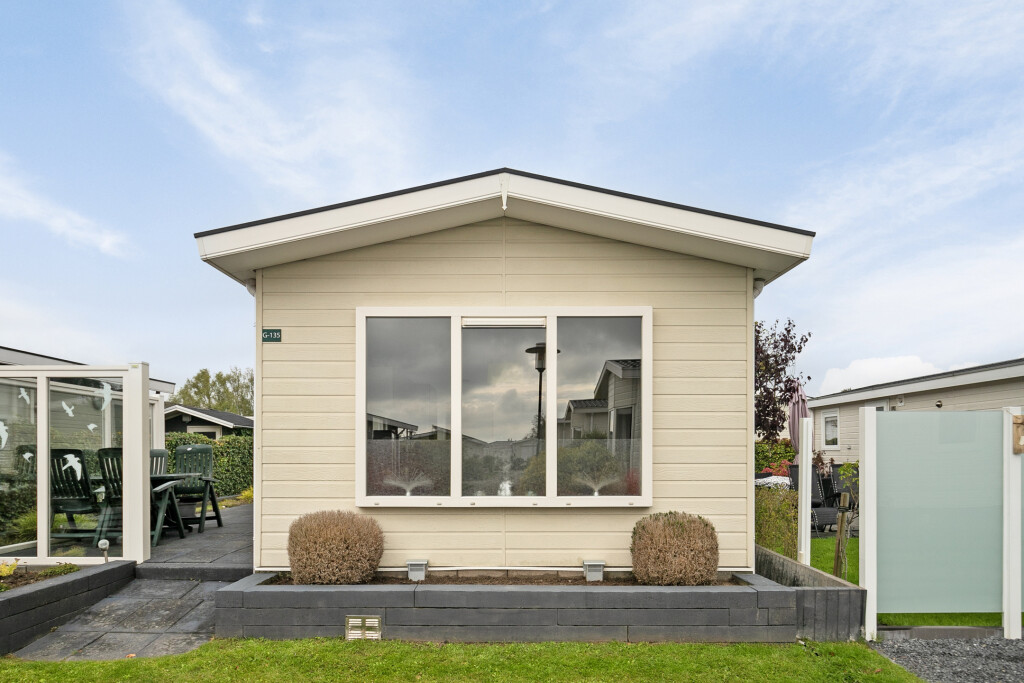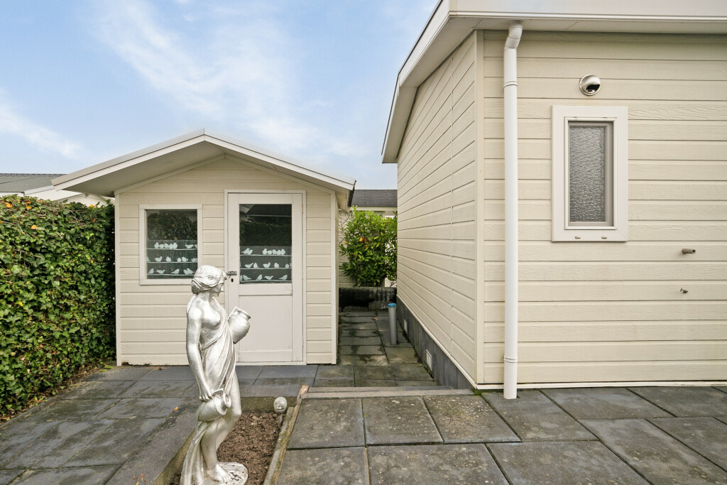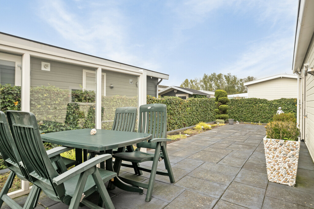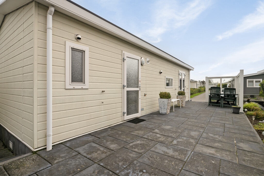 De zonnige, onderhoudsvriendelijke tuin ligt op het westen en biedt op het terras voldoende ruimte voor een gezellige zit- en/of eethoek. Daarnaast beschikt het chalet over een tuinhuis, ideaal voor extra opslagruimte.