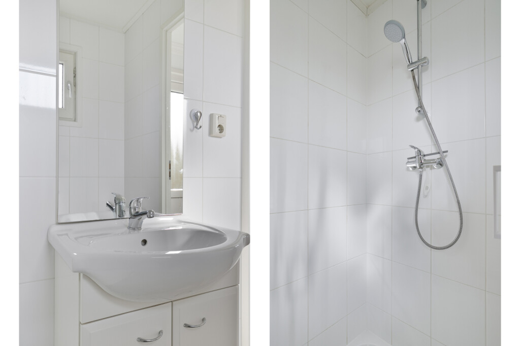 * de douchecabine is vernieuwd in 2023;