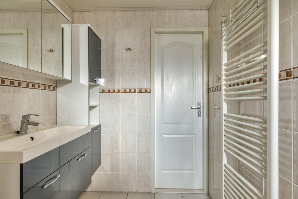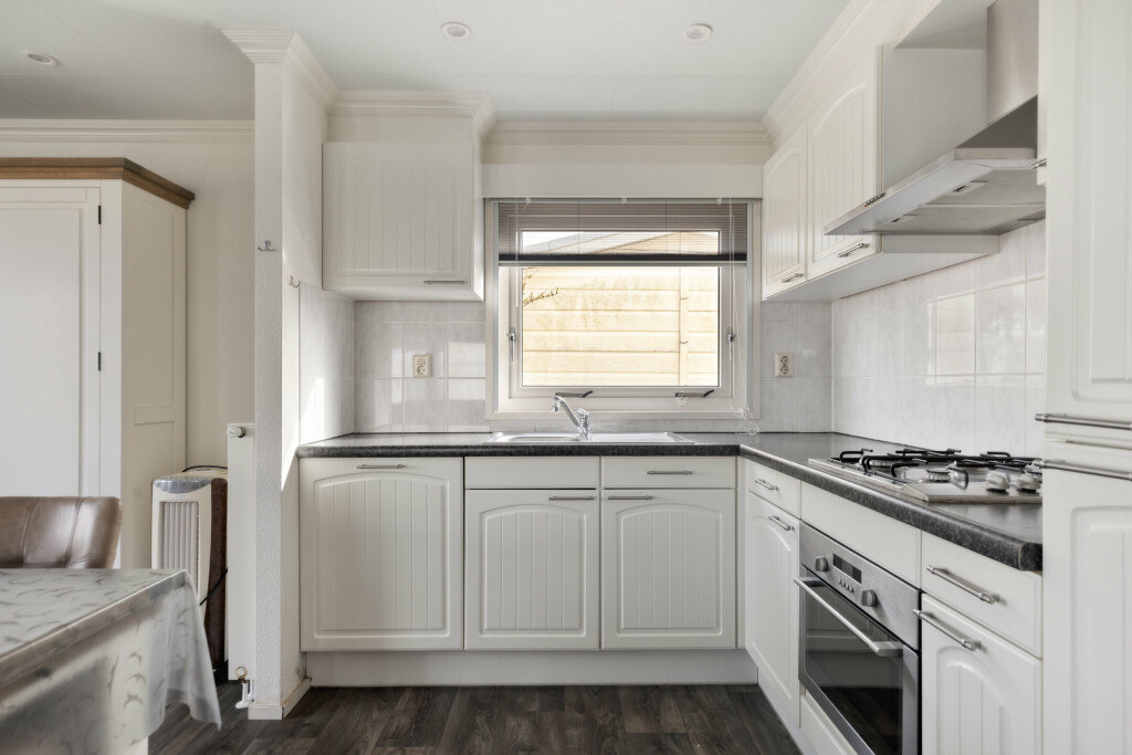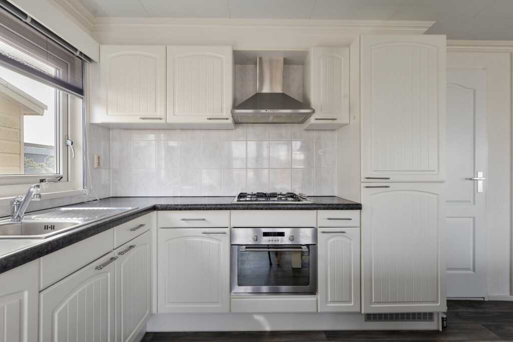 Via de entree in de hal heeft u toegang tot alle vertrekken. De ruime woonkamer vormt het hart van de woning en beschikt over twee schuifpuien. Hierdoor ontstaat een prachtige lichtinval en een directe verbinding met het overdekte terras. De open keuken is netjes afgewerkt en voorzien van diverse inbouwapparatuur, waaronder een 4-pits gaskookplaat, afzuigkap, combi-oven, koelkast, diepvries en vaatwasser. Dankzij de praktische opstelling is er voldoende werk- en bergruimte.