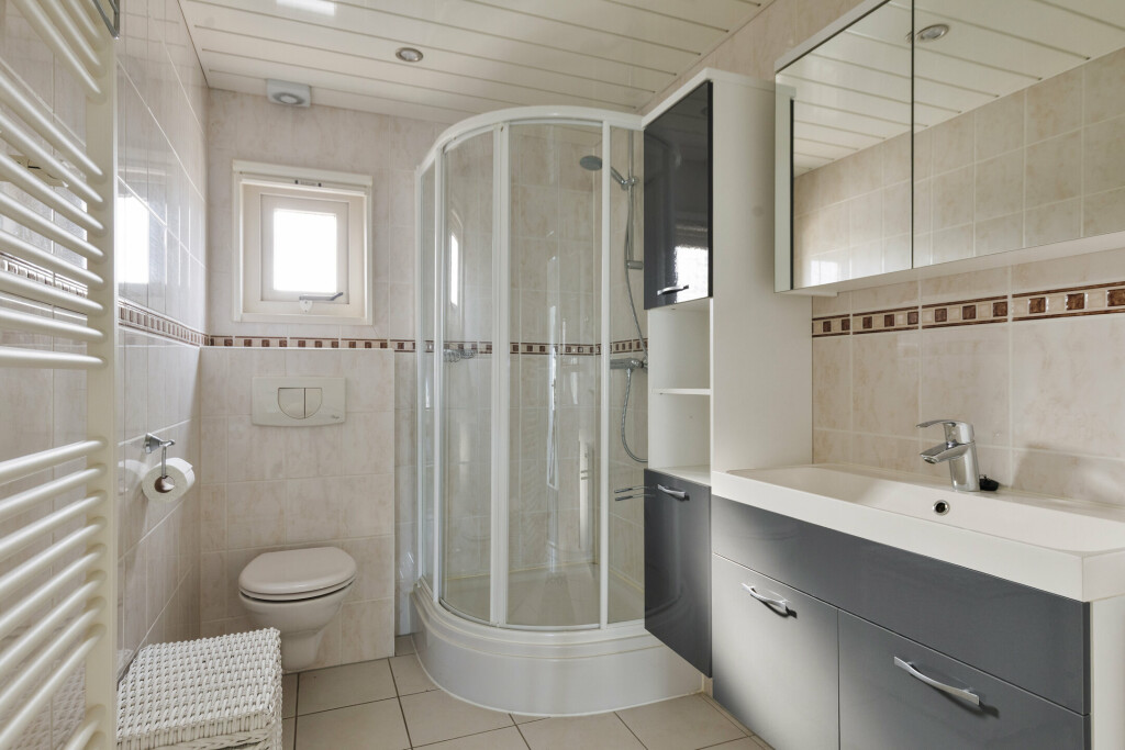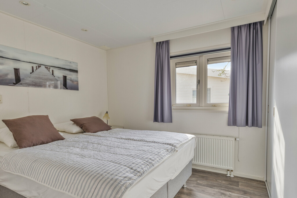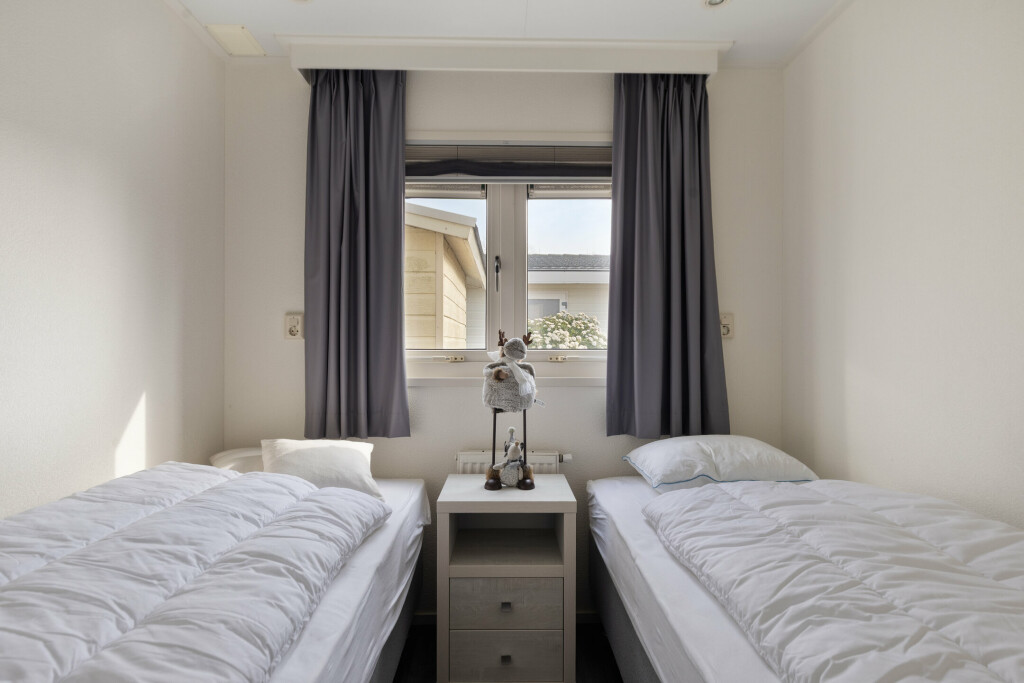 Het chalet beschikt over twee comfortabele slaapkamers. De hoofdslaapkamer is voorzien van vaste kastruimte. De badkamer is compleet uitgevoerd met een douchecabine, toilet en een vernieuwd wastafelmeubel (2018). Daarnaast is er nog een separate toiletruimte, wat extra gemak biedt voor u en uw gasten. Ook zijn er twee praktische bergruimtes aanwezig.