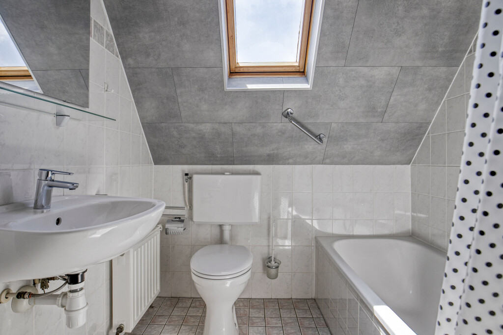 Via de trap bereikt u de overloop die toegang geeft tot alle ruimtes waaronder een berging en twee ruime slaapkamers. De nette badkamer beschikt over een ligbad, toilet en wastafel. De verdieping (m.u.v. de badkamer) is voorzien van een nette pvc vloer.
