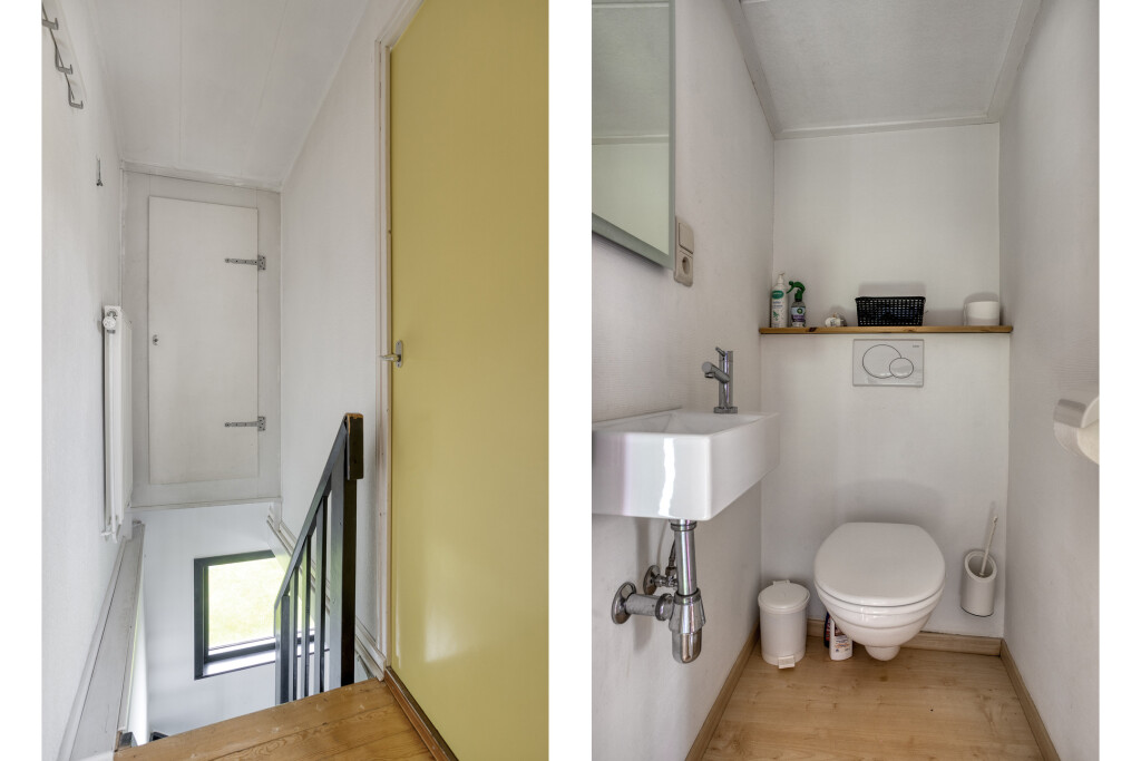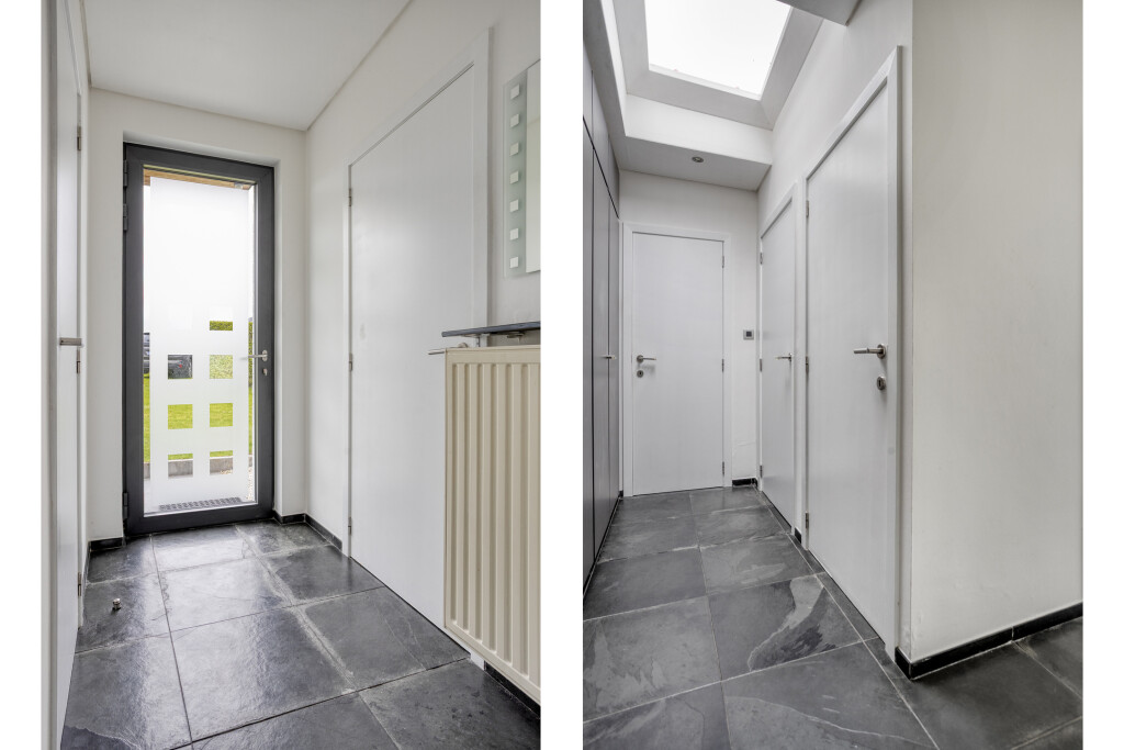 Via de entree met lichtkoepel bereikt u de hal met toiletruimte en praktische bergkasten. Vanuit de hal is er toegang tot de berging, waar tevens de CV-installatie is geplaatst.