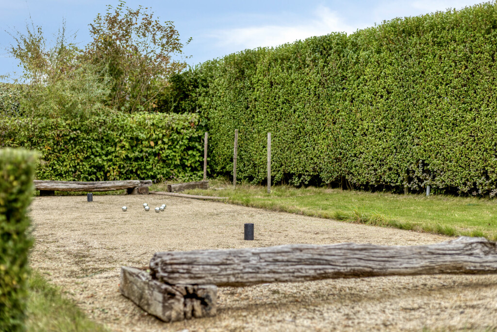 Verder beschikt het perceel over een vrijstaande garage met elektra en stalen dak, en is er een petanque baan aangelegd, wat de tuin een extra recreatief karakter geeft.
